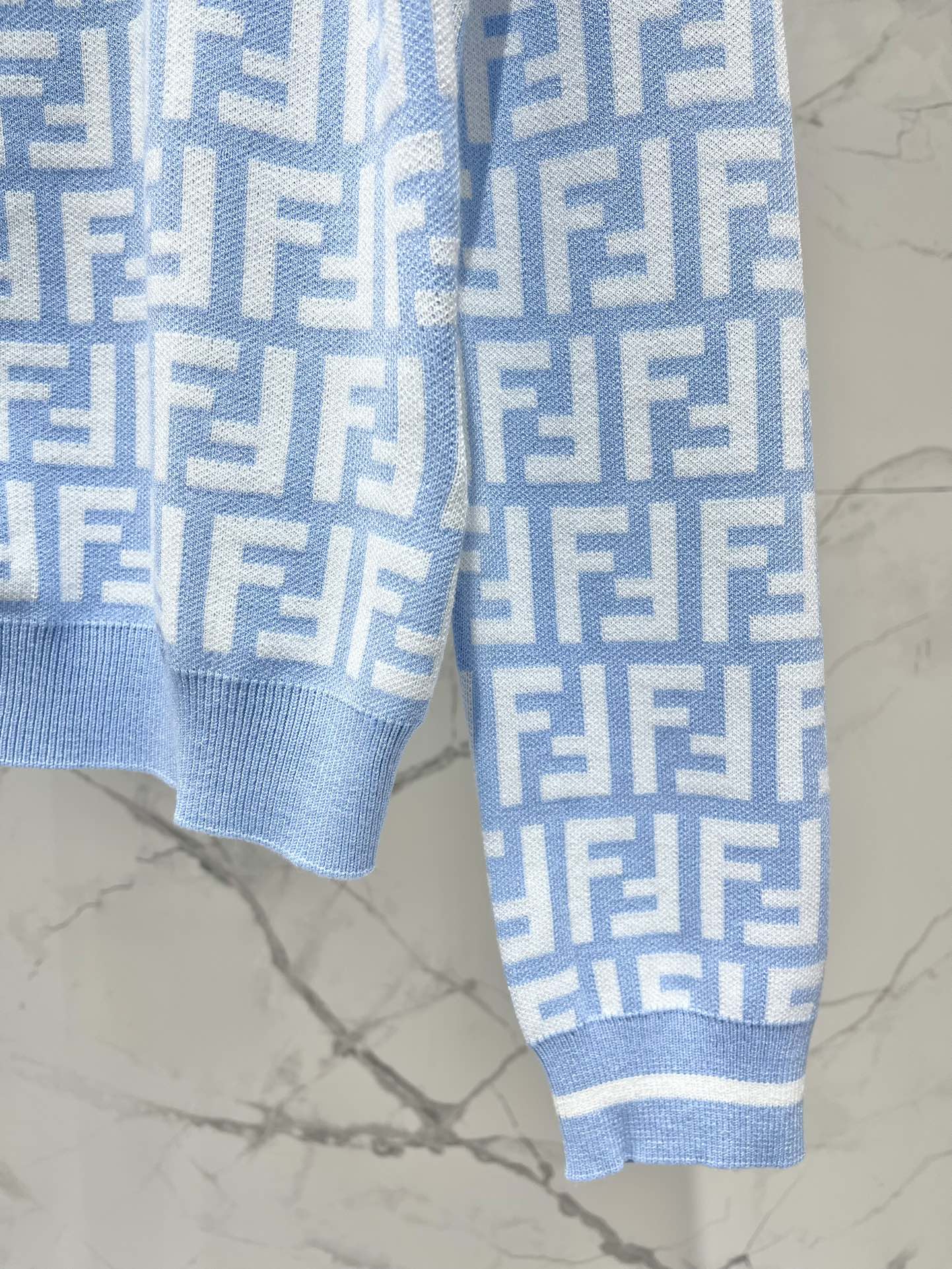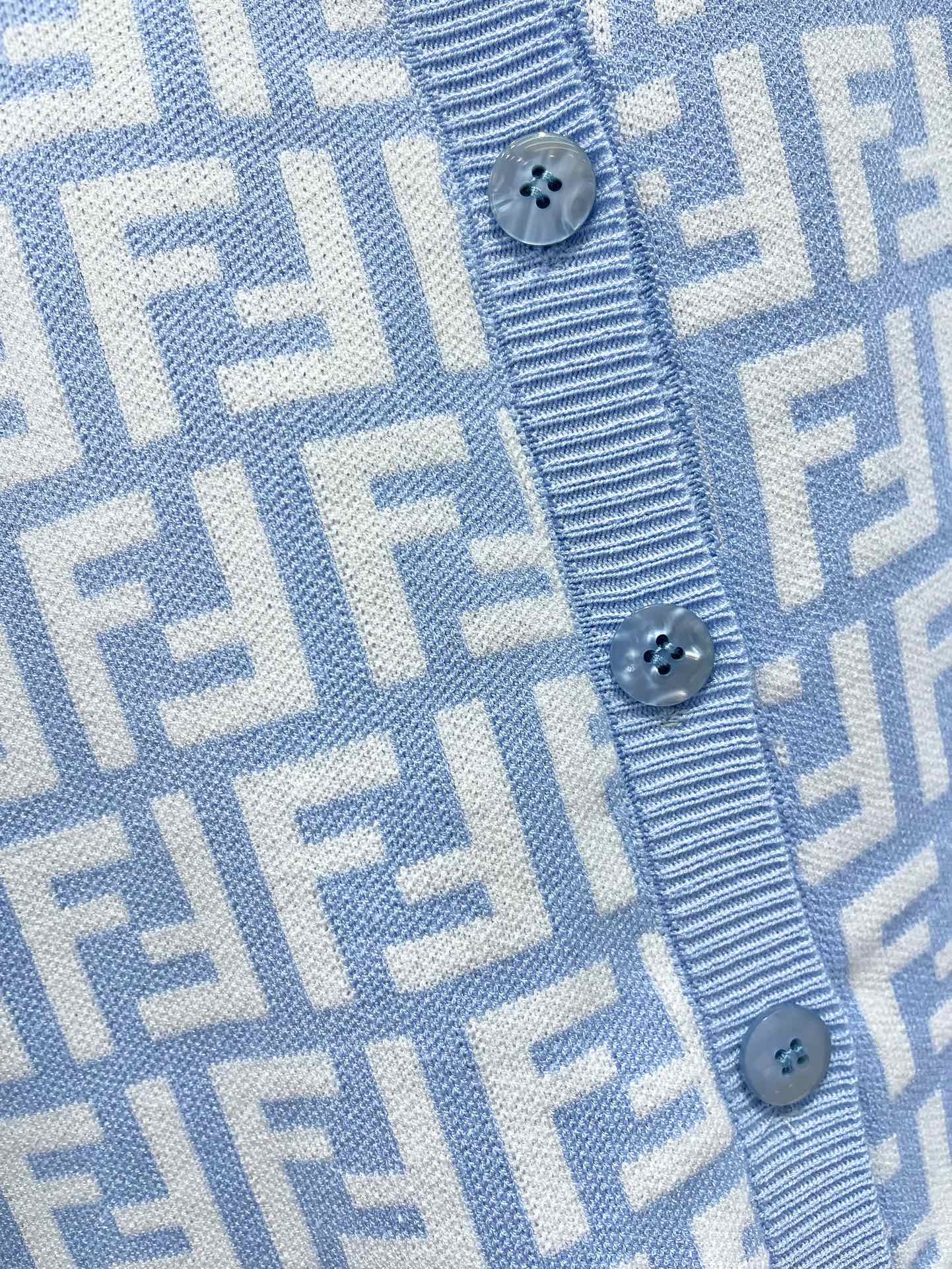 Fendi Double f Letter Knitted Cardigan Blue Wool