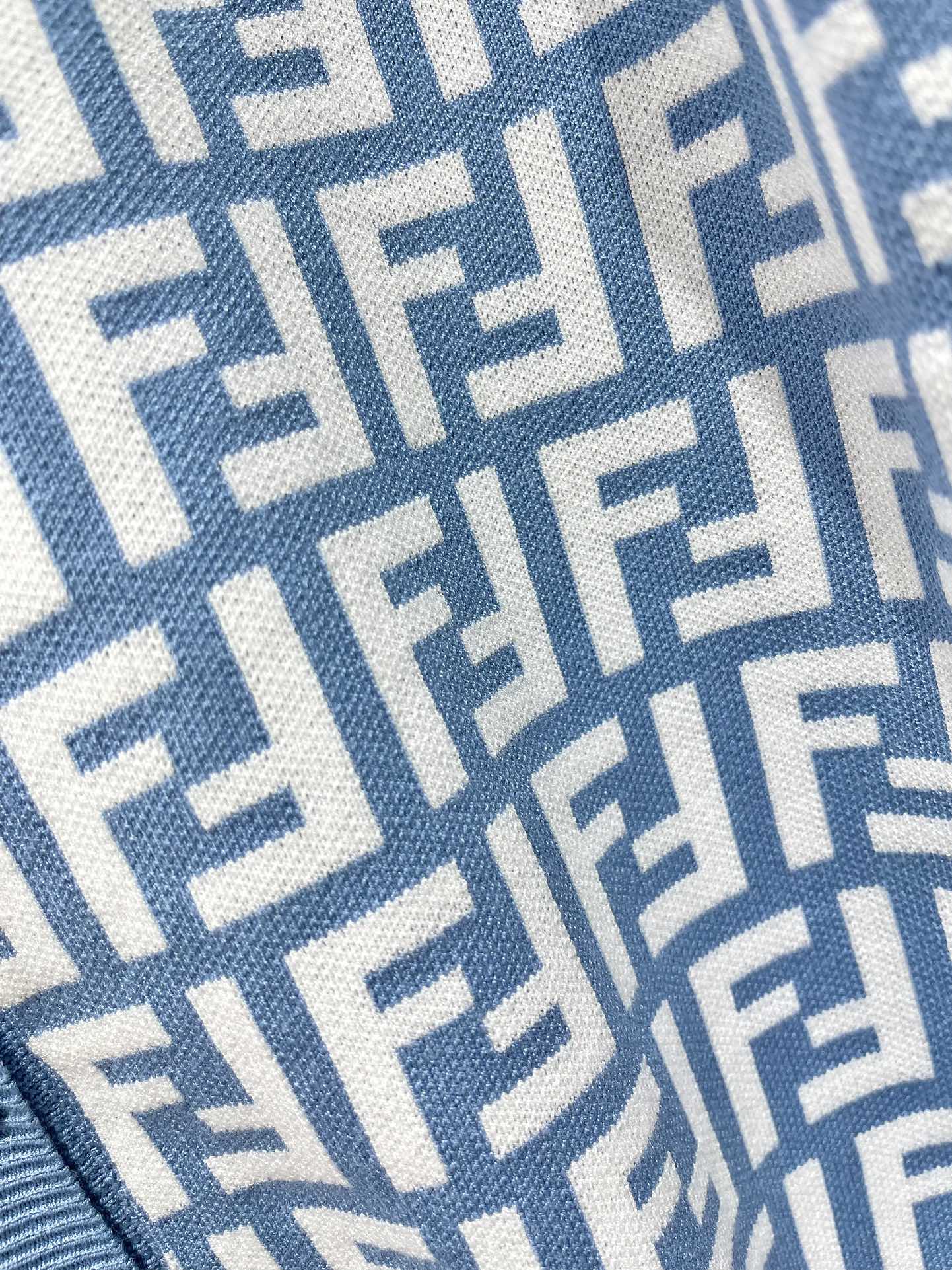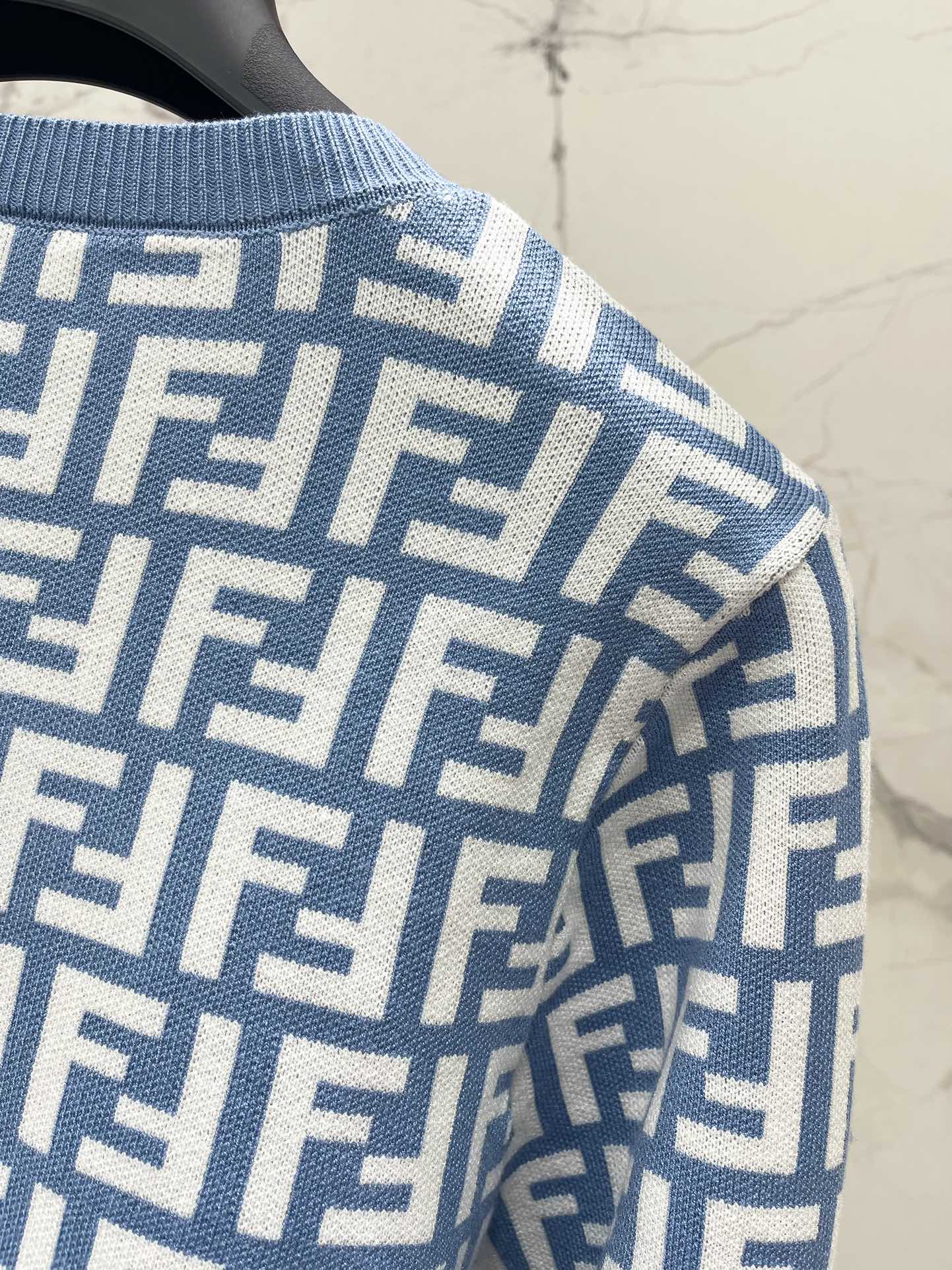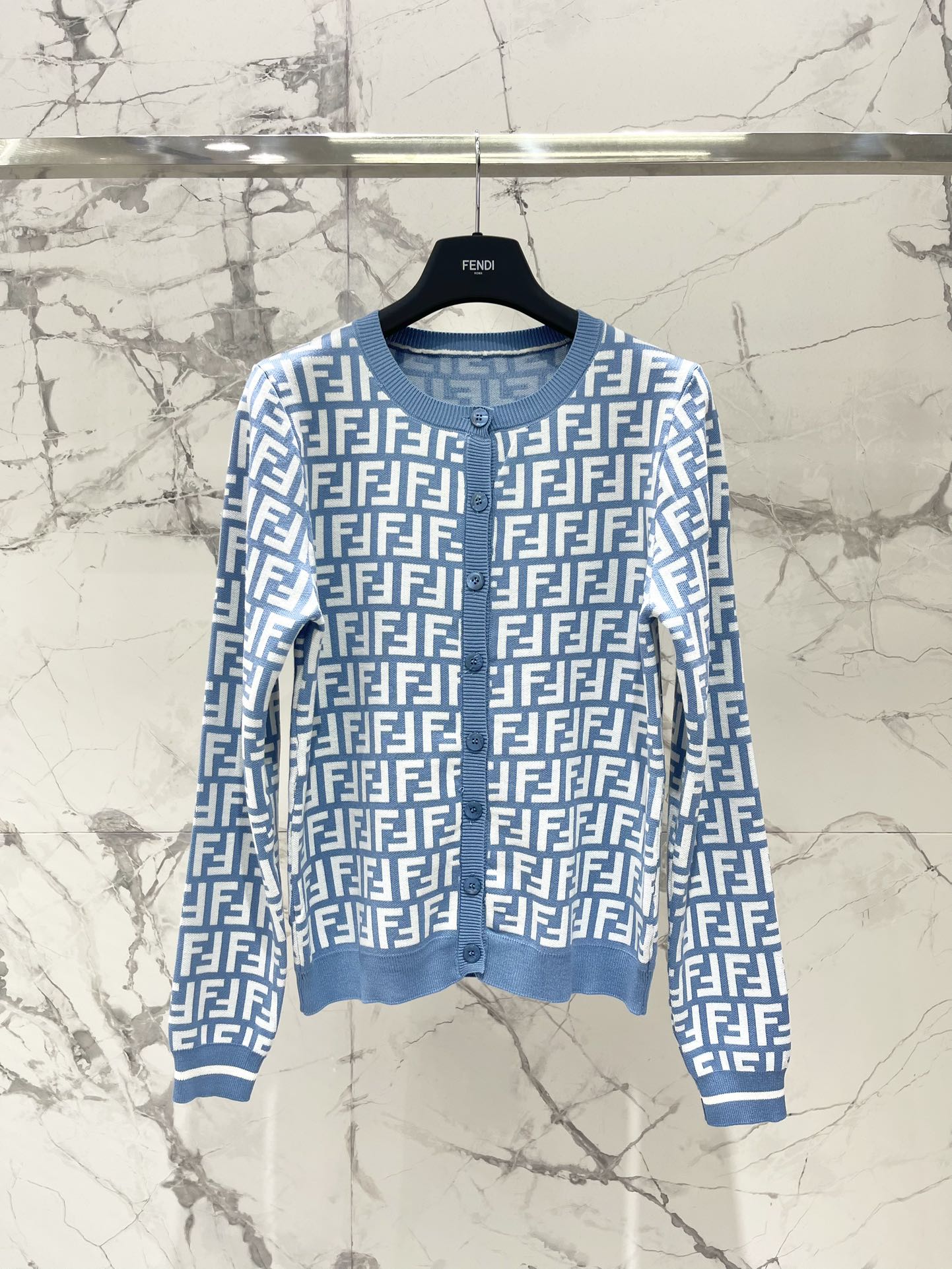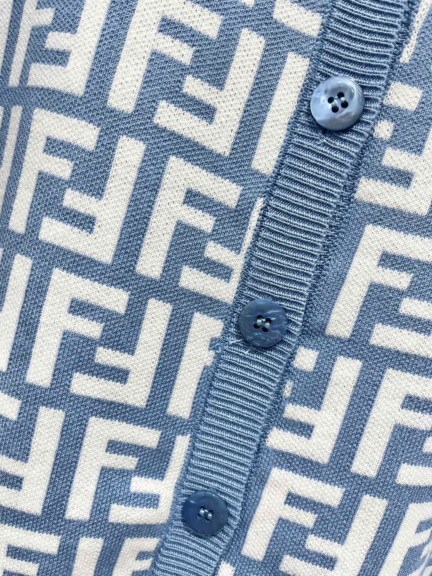 Fendi Double f Letter Knitted Cardigan Steel Blue Wool