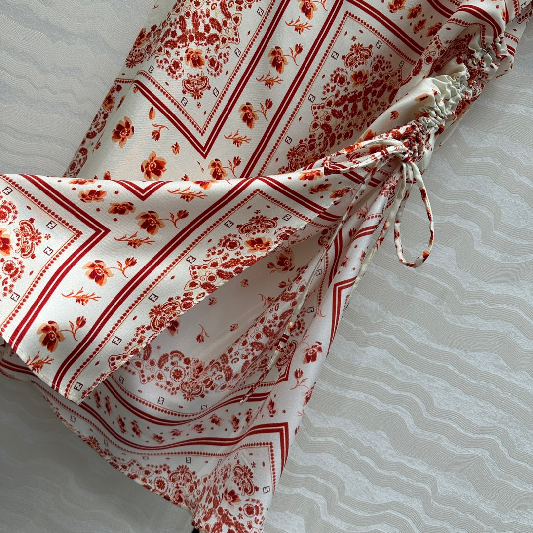 Fendi Flower Dress Red Silk