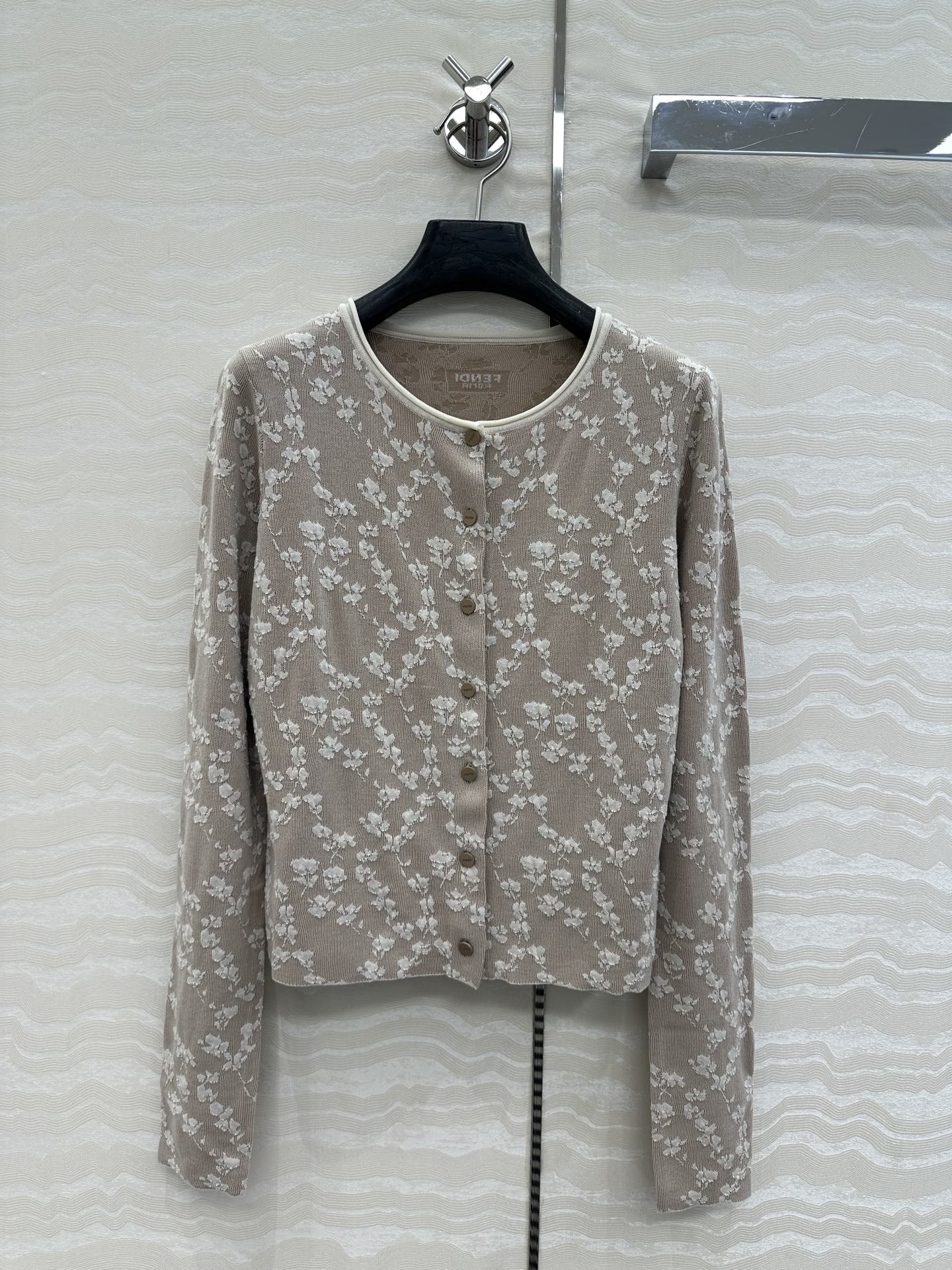 Fendi Knitted Cardigan Beige Cotton Viscose
