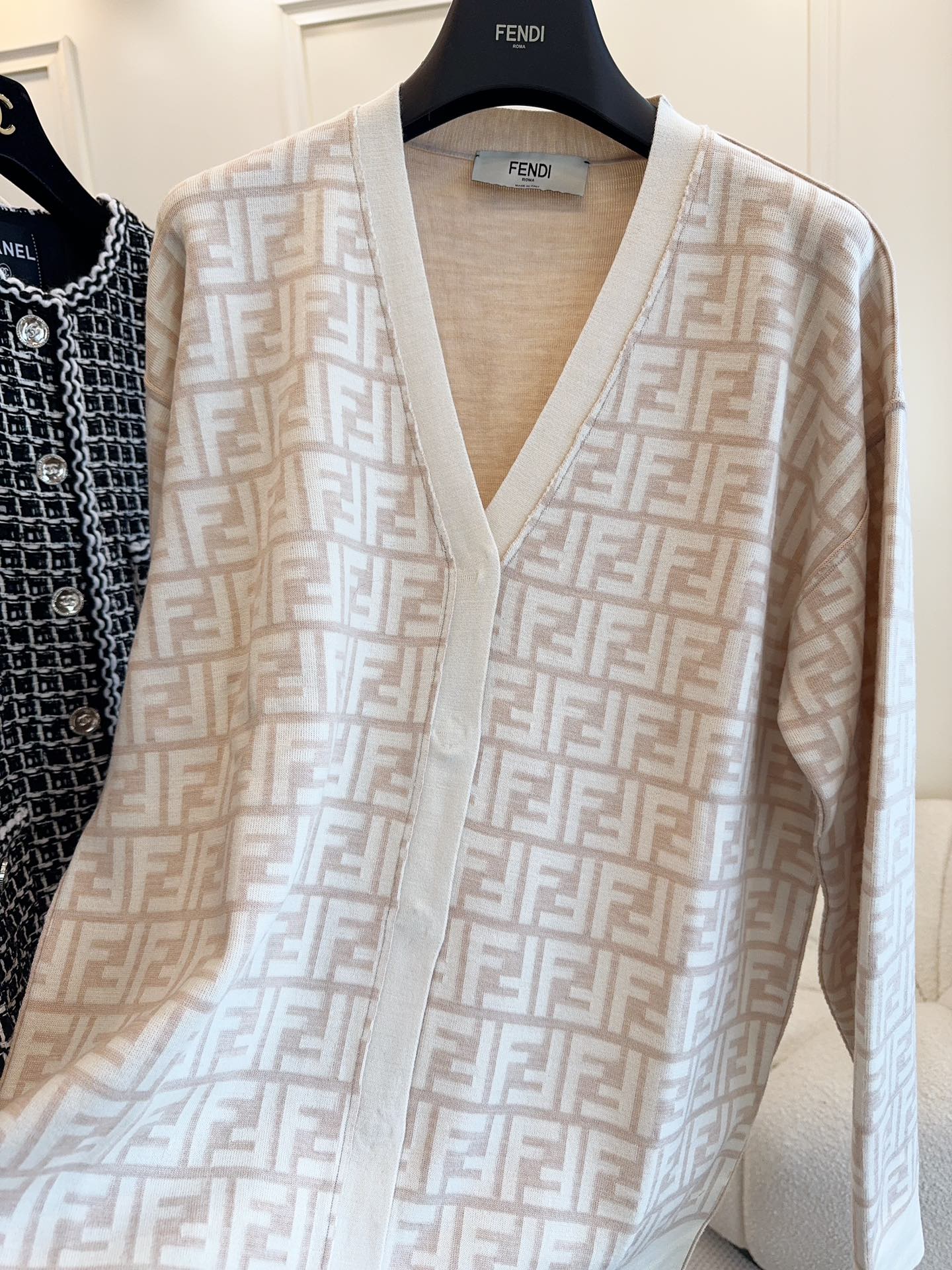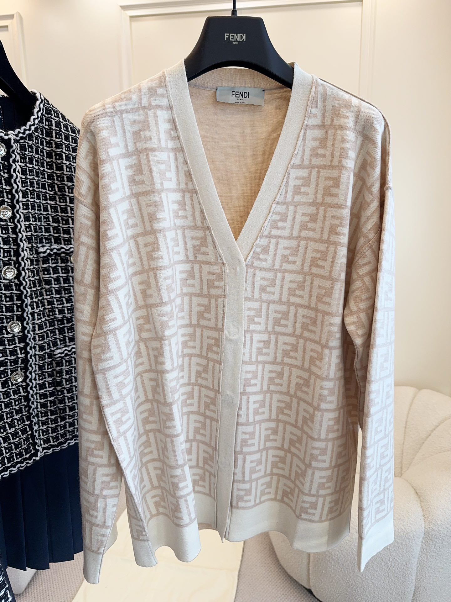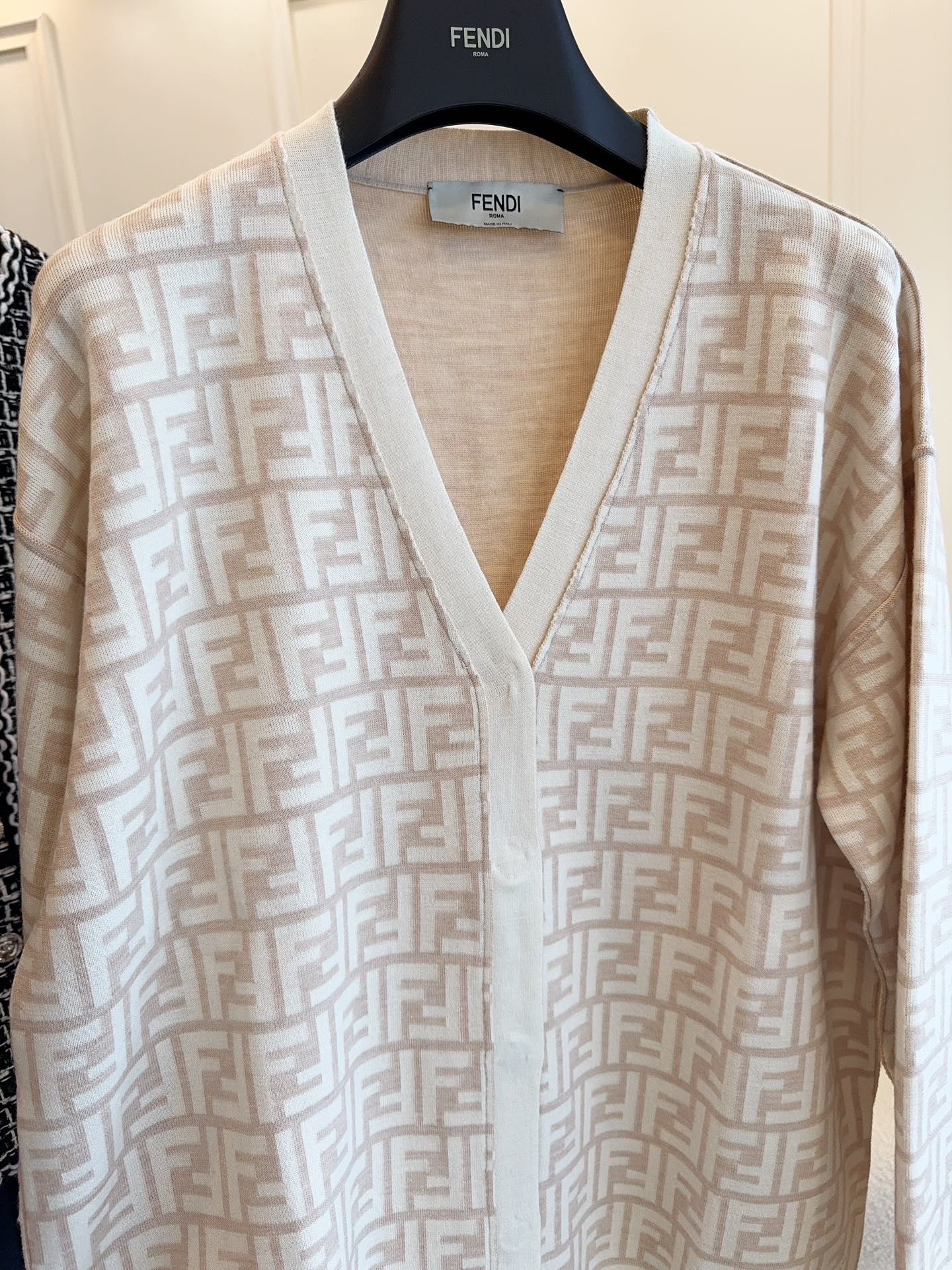 Fendi Monogram Cardigan Beige Wool