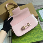 DIAMOND HORSEBIT SHOULDER BAG 24 IN LIGHT PINK CALFSKIN GOLD HARDWARE