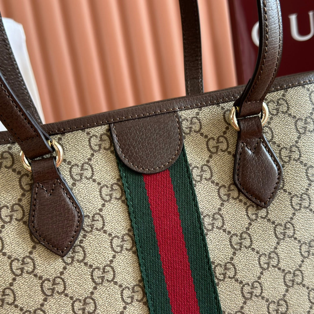 GG 2025 Ophidia 31cm Tote Bag Ebony Brown Canvas Leather
