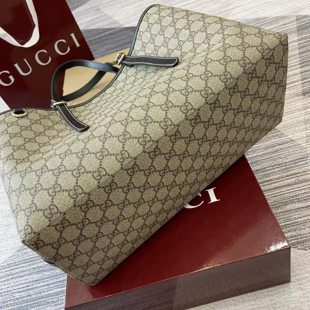 GG Emblem Maxi Tote Bag Beige & Dark Brown Monogram Coated Fabric