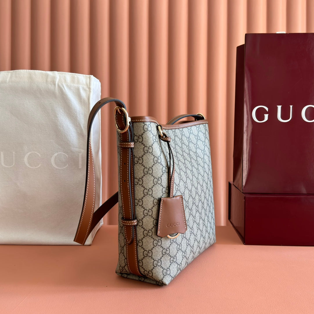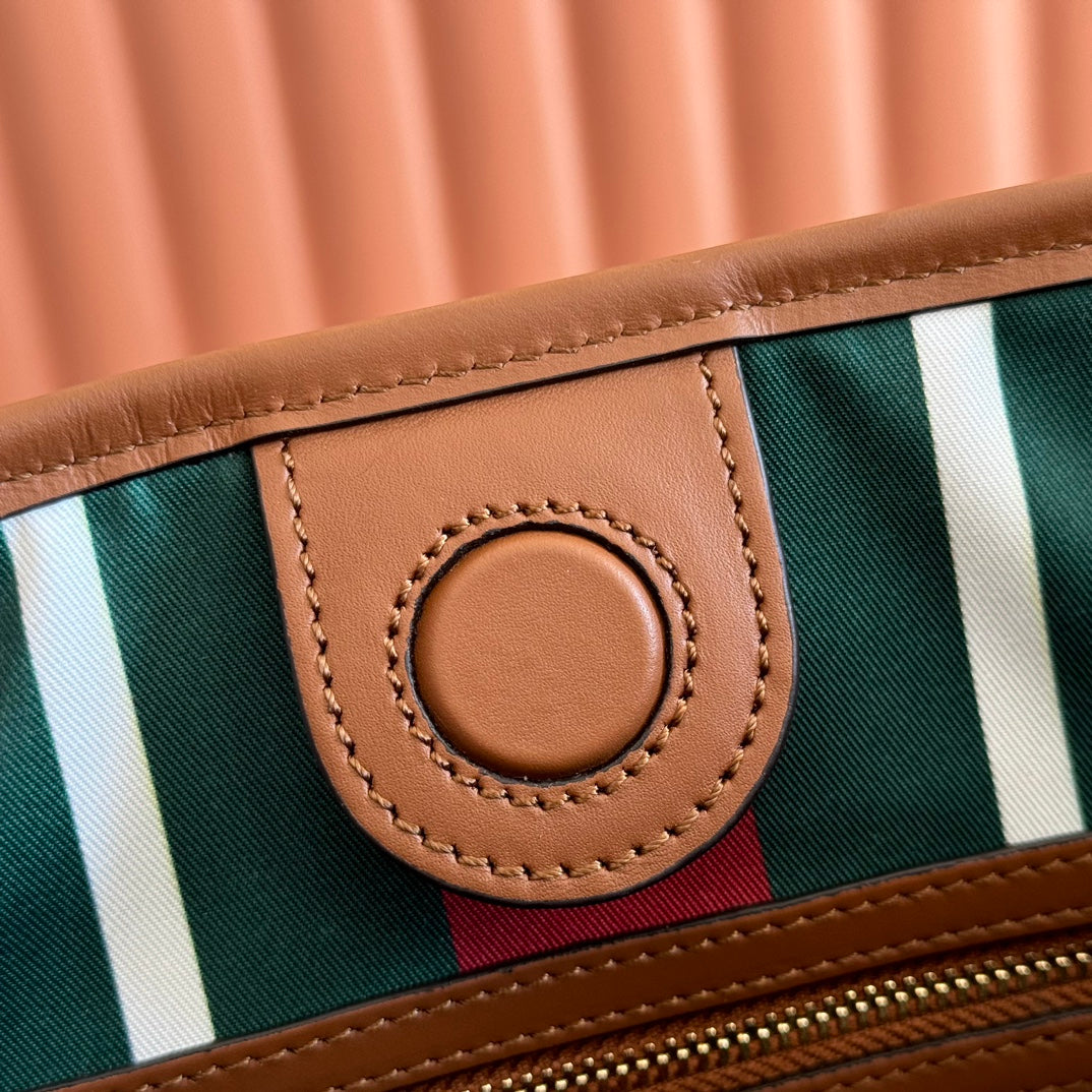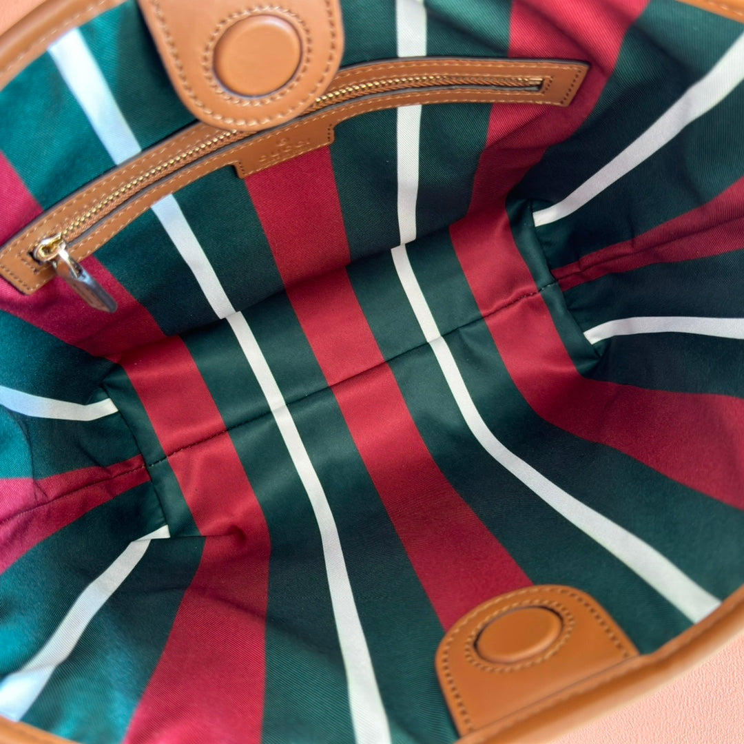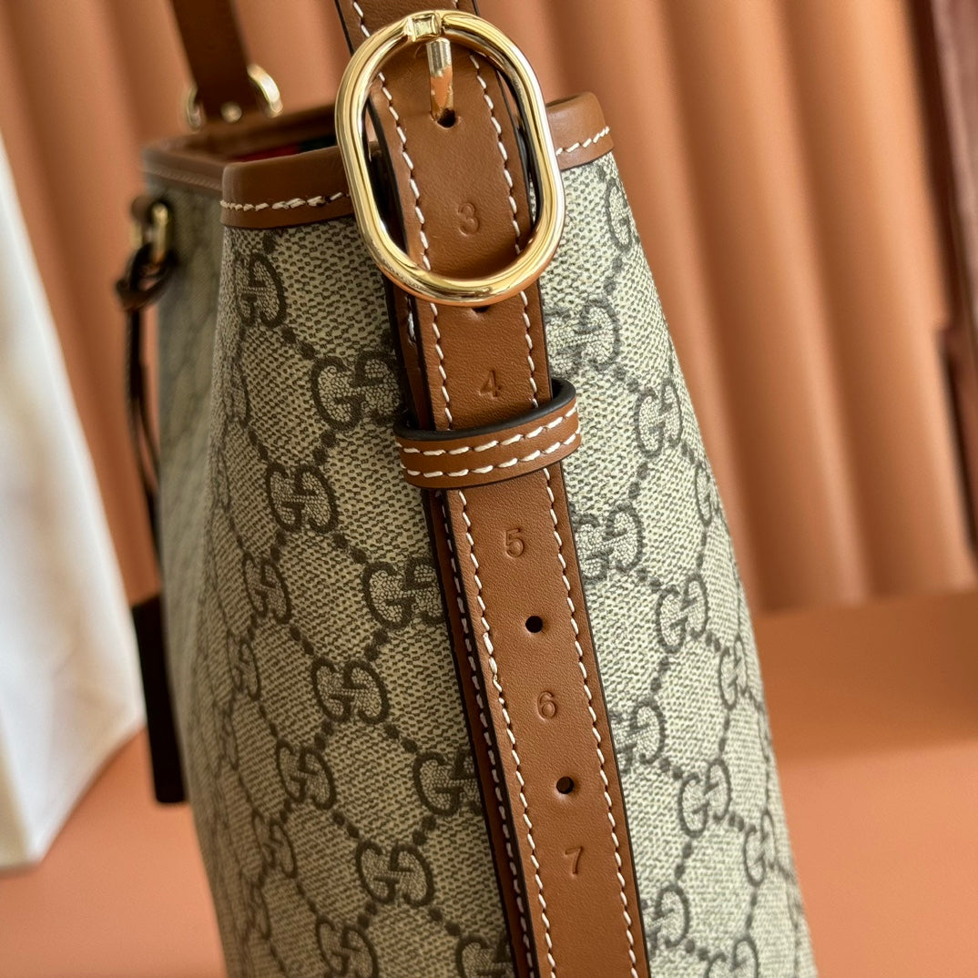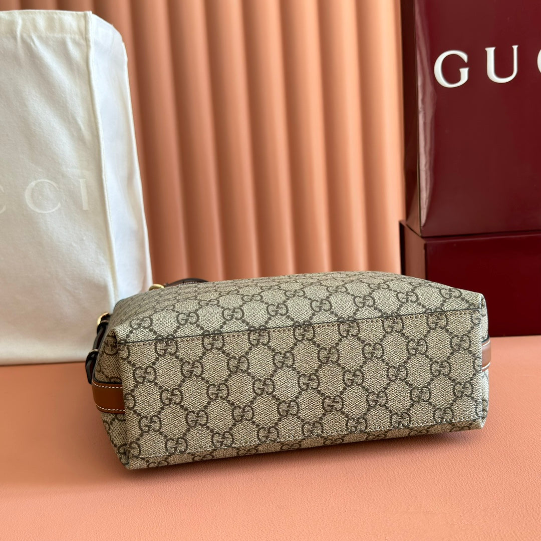 GG Emblem Small Shoulder Bag 24 Beige & Dark Brown Fabric