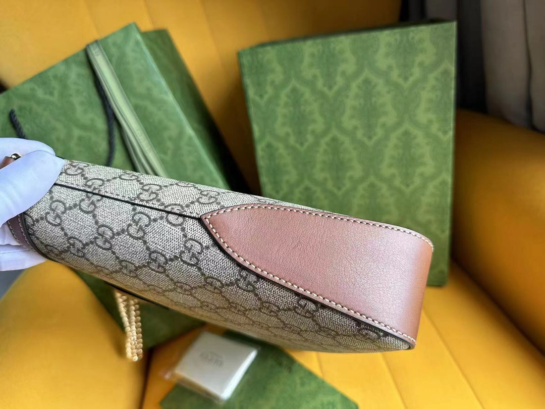 GG PADLOCK 32 SHOULDER BAG BEIGE CANVAS AND BROWN CALFSKIN
