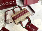 Gucci 25 GG Handbag 20cm Beige mix Rosso Ancora Red Canvas Leather 286710
