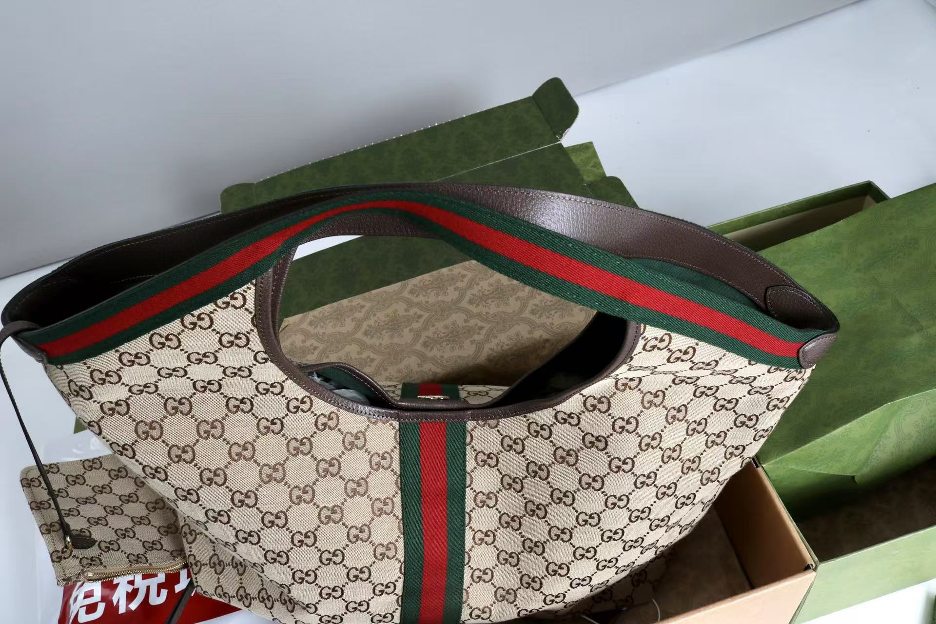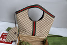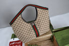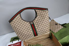 Gucci Giglio Large Tote Bag Beige and Red Denim