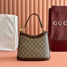 Gucci Large Interlocking G Shoulder Bag 25cm Chocolate Beige GG Supreme Canvas Leather 273677