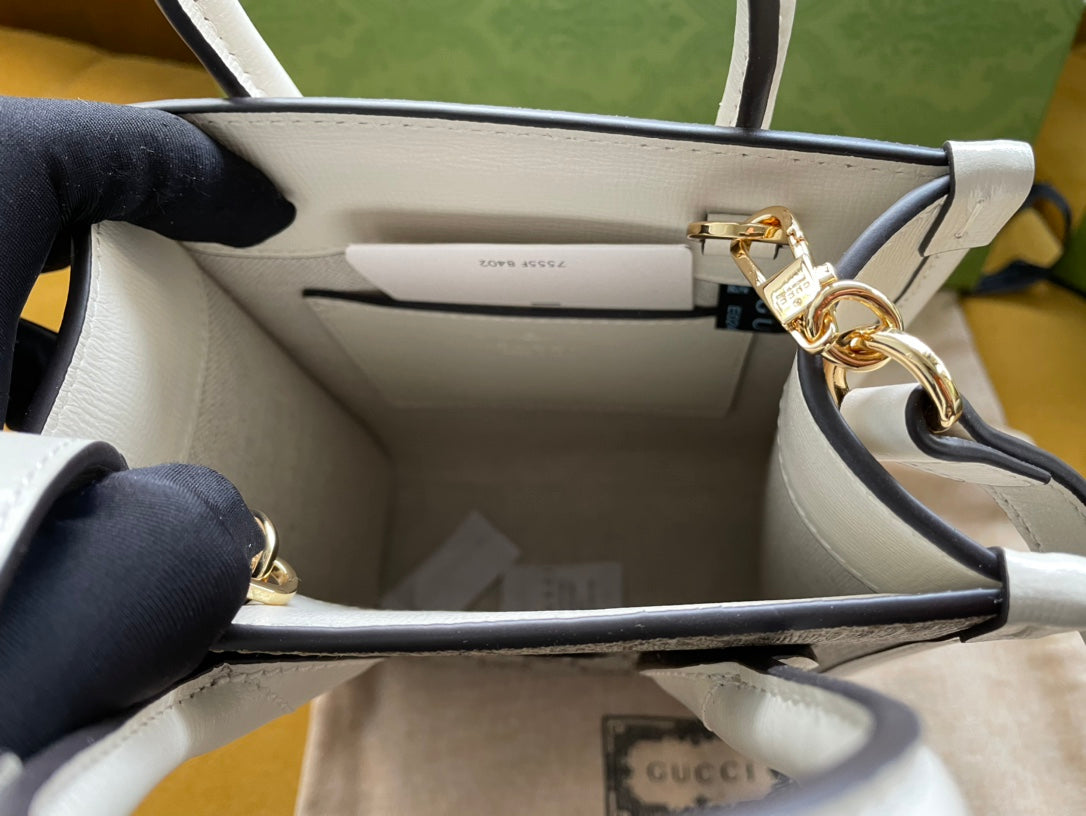 MINI TOTE 20 BAG IN BEIGE CANVAS AND WHITE CALFSKIN
