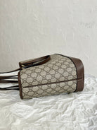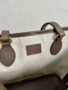 OPHIDIA SMALL TOTE BAG 31 BEIGE CANVAS AND BROWN CALFSKIN