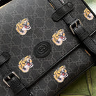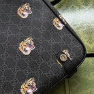 TIGER PRINT MESSENGER BAG 28 IN BLACK CANVAS AND LEATHER TRIM