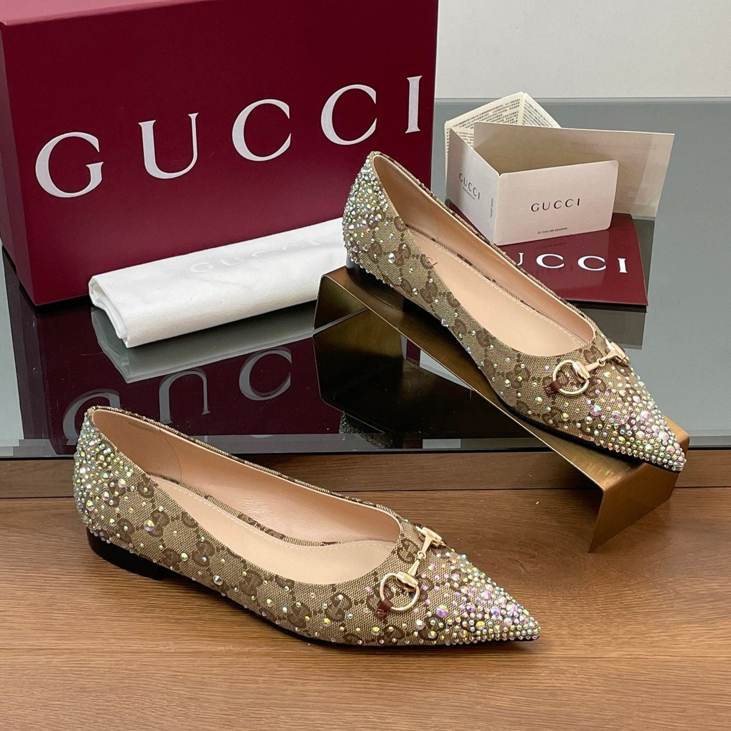 GG Horsebit Ballet Flat Beige Ebony Monogram Canvas Crystal-Embellished