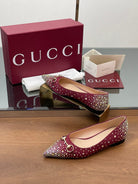 GG Horsebit Ballet Flat Red Ebony Monogram Canvas Crystal-Embellished
