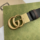 DOUBLE G GOLD BUCKLE 38MM BLACK BROWN LEATHER