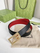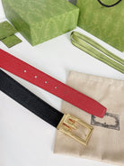 G BELT GOLD BUCKLE RED BLACK LEATHER 3.5CM