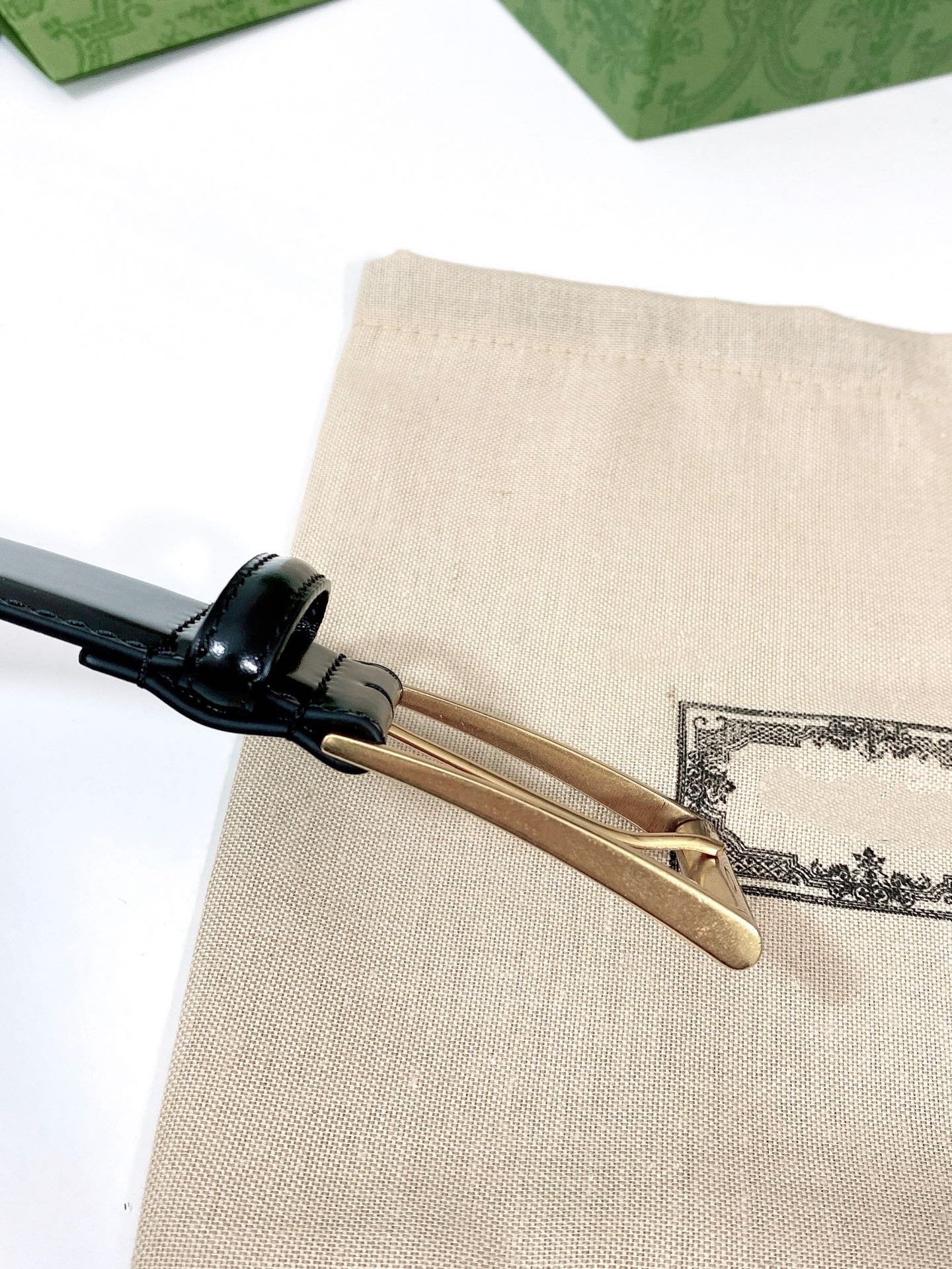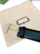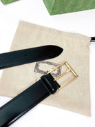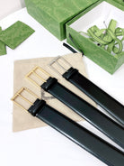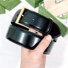 G BELT GOLD SQUARE INSTALL BUCKLE BLACK LEATHER 4.0CM