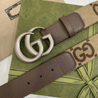 GG BELT 40MM SILVER BUCKLE BEIGE CANVAS