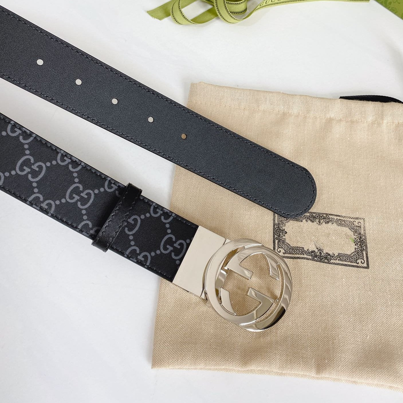 INTERLOCKING G SILVER BUCKLE 38MM BLACK LEAHTER MONOGRAM