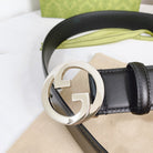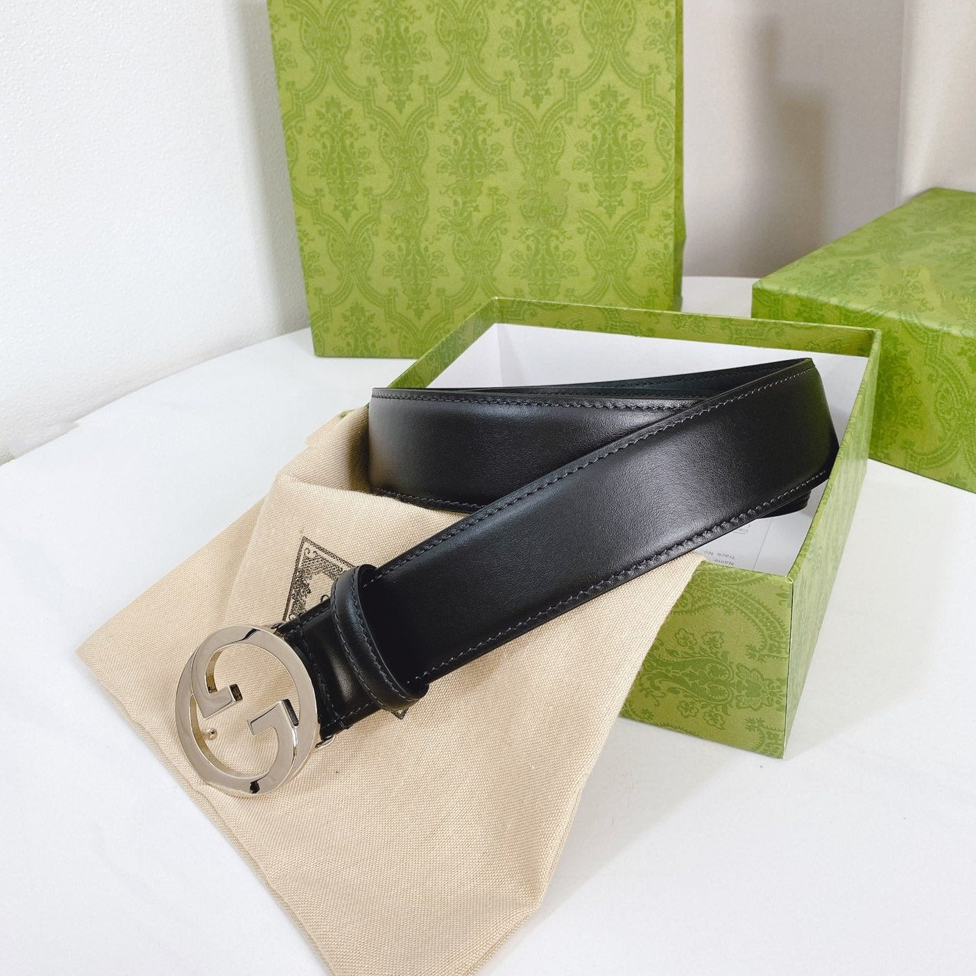 INTERLOCKING G SILVER BUCKLE 40MM BLACK LEAHTER