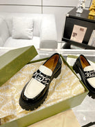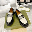 GG LOAFER WITH GG CHAINS GLOSSY BLACK AND WHITE CALFSKIN