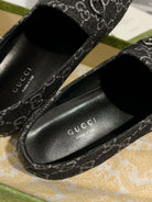 MEN'S LOAFER WITH HORSEBIT IN BLACK MONOGRAM JACQUARD FABRIC