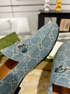 MEN'S LOAFER WITH HORSEBIT IN SAPHIRE BLUE MONOGRAM JACQUARD FABRIC