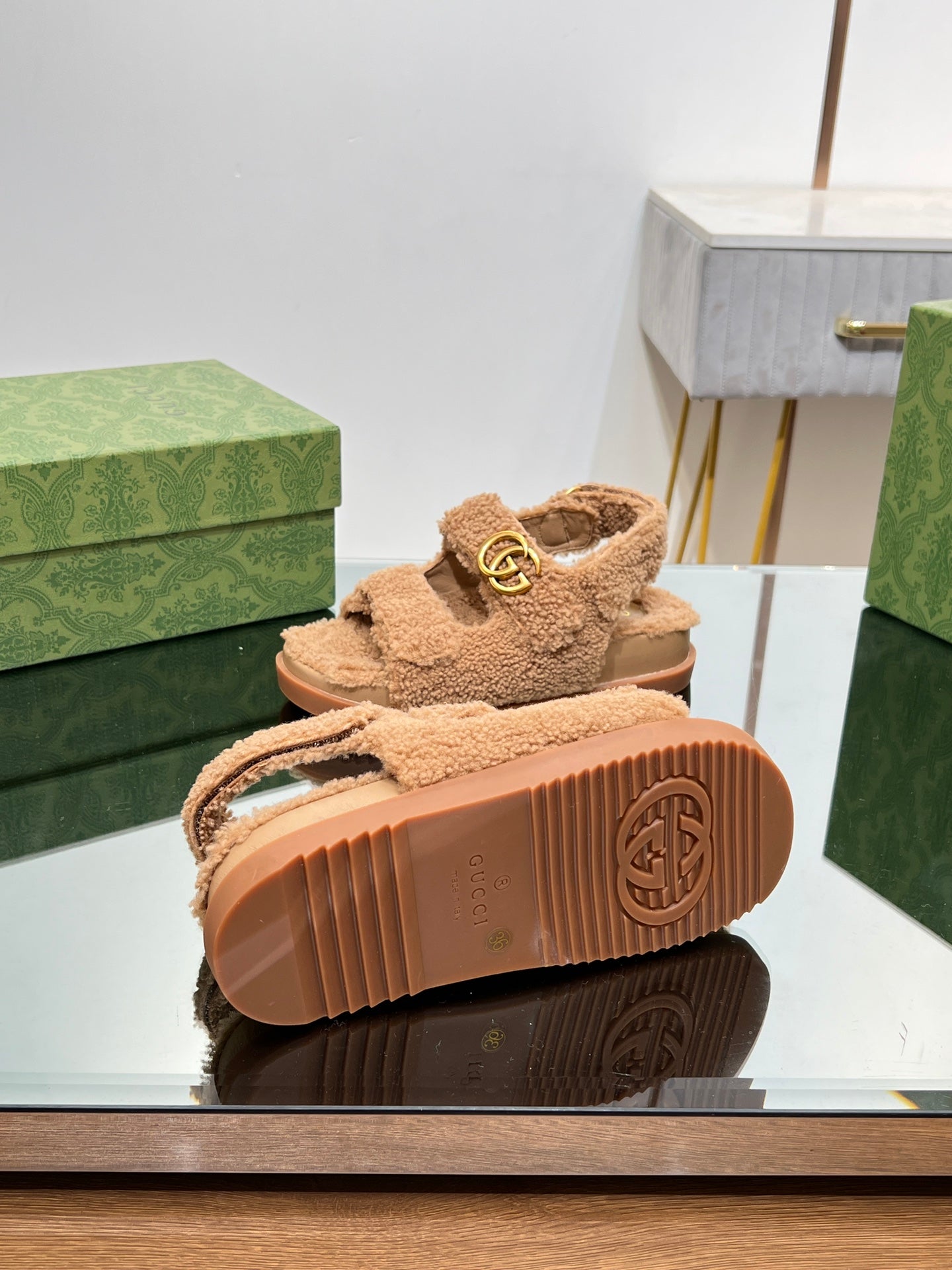 DAD SANDALS IN CIDER BROWN FLEECE