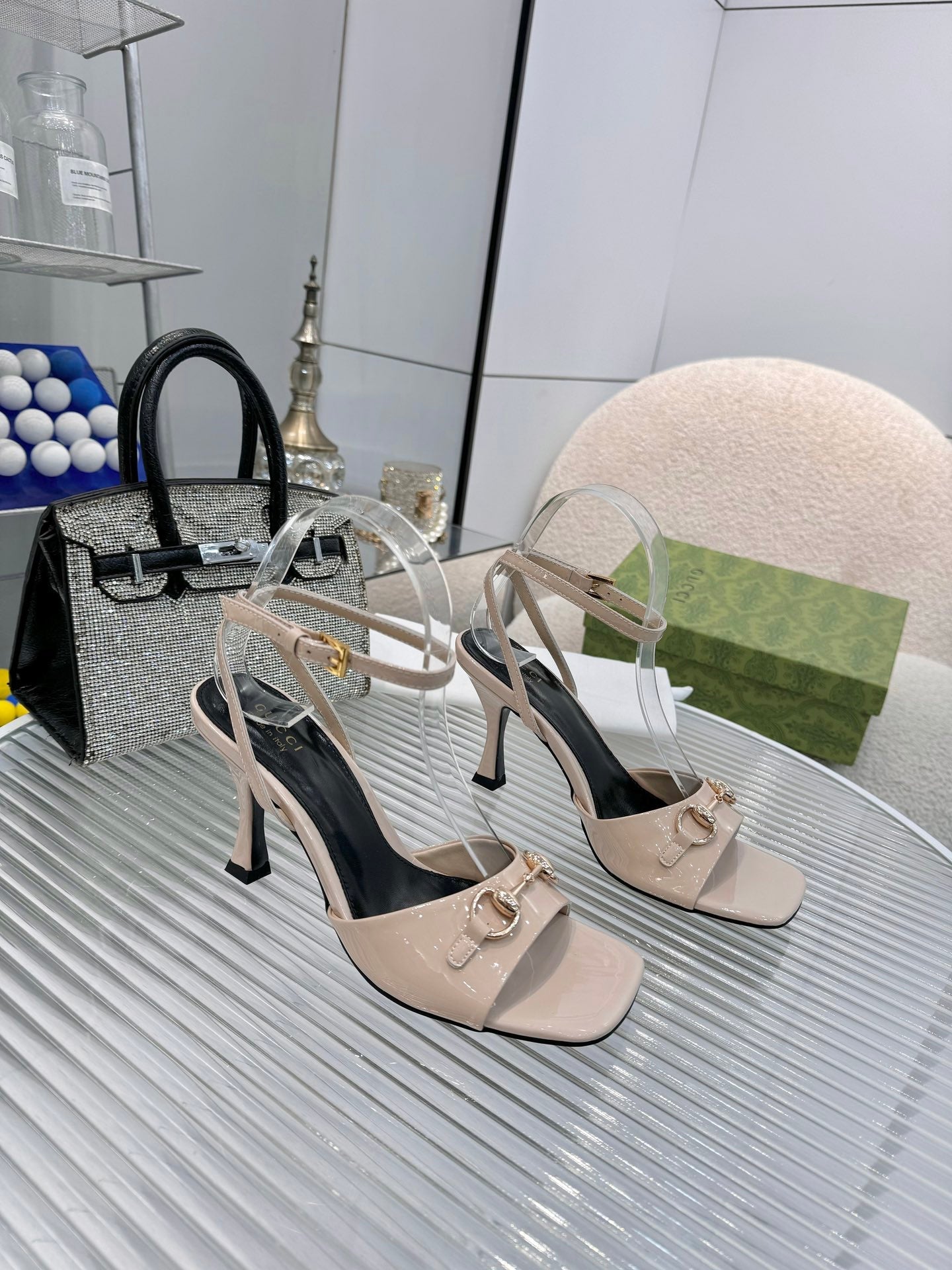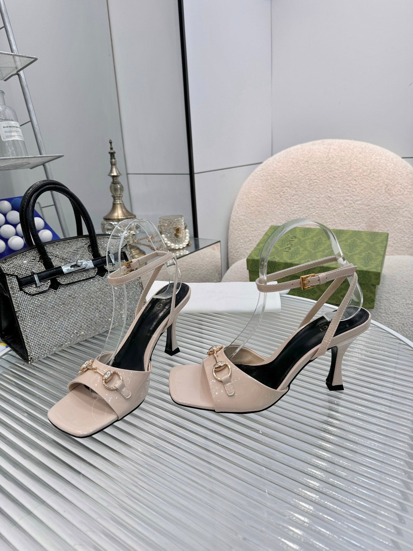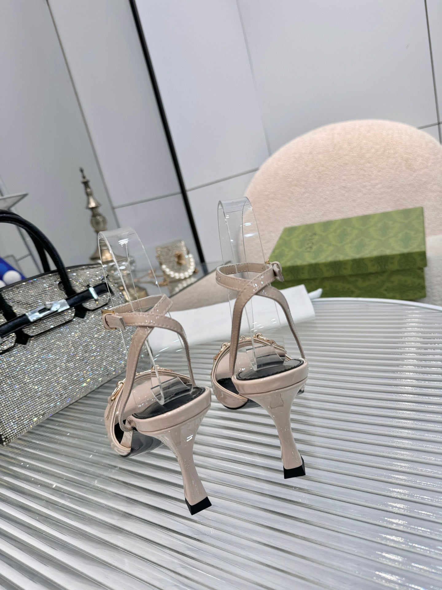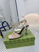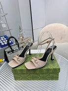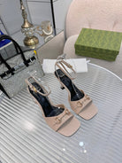 GG Gold Buckle Sandal 80mm Beige Patent Leather 457557