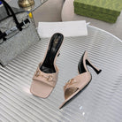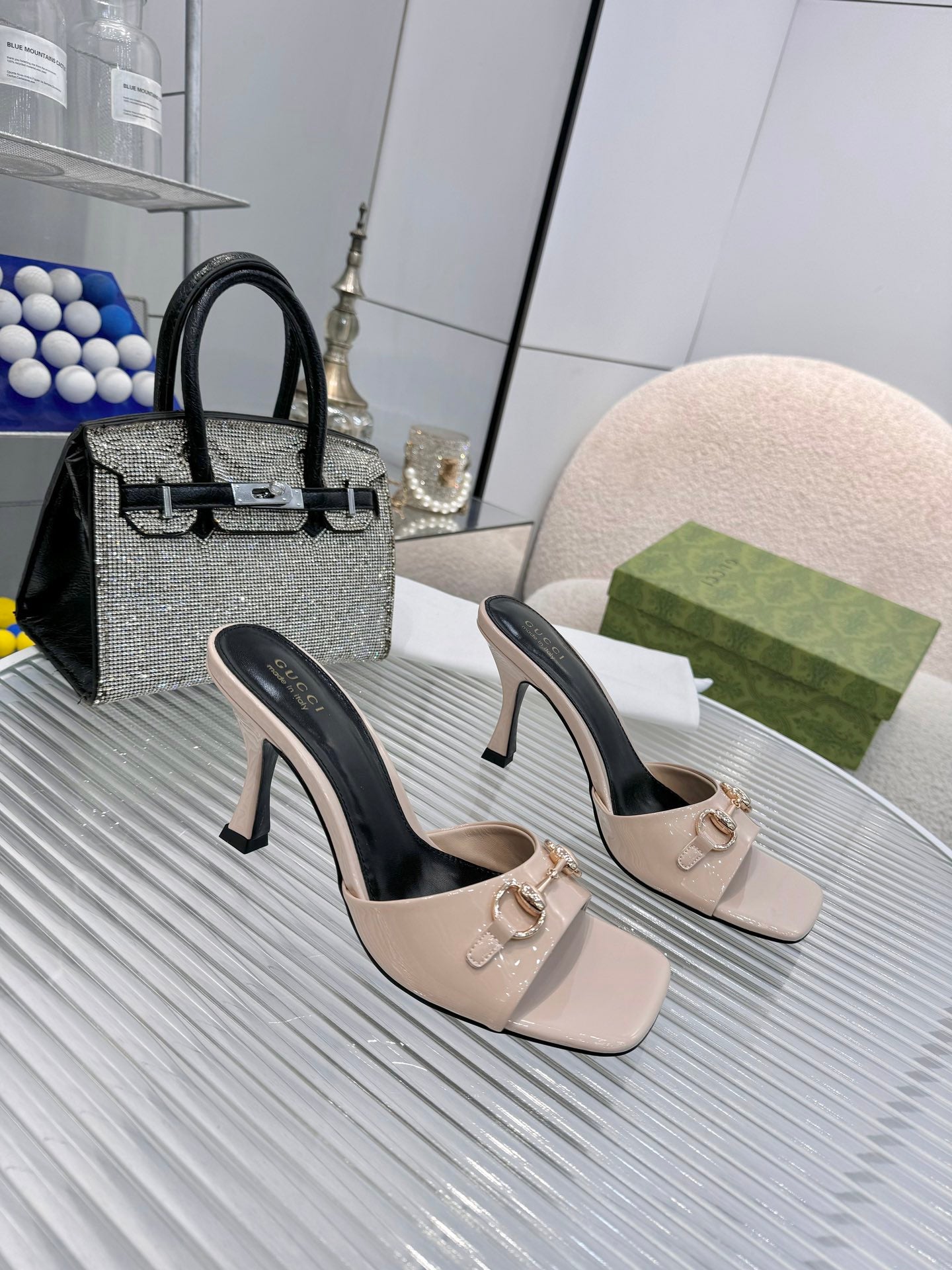 GG Gold Buckle Slide Sandal 80mm Beige Patent Leather 457561