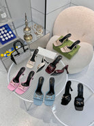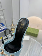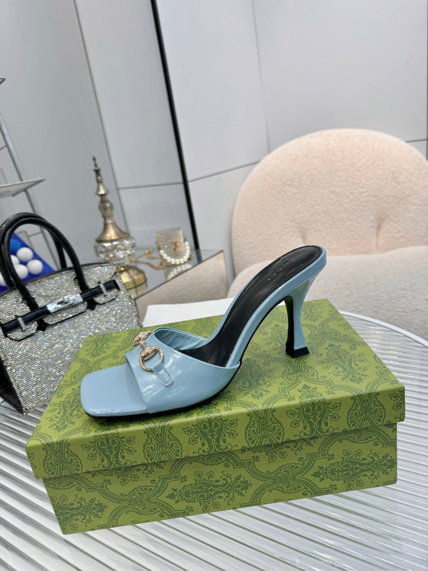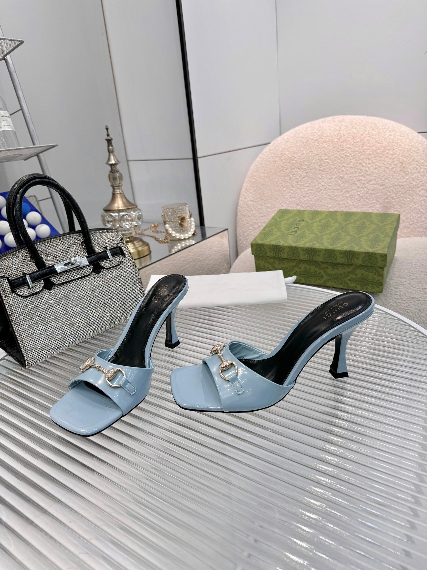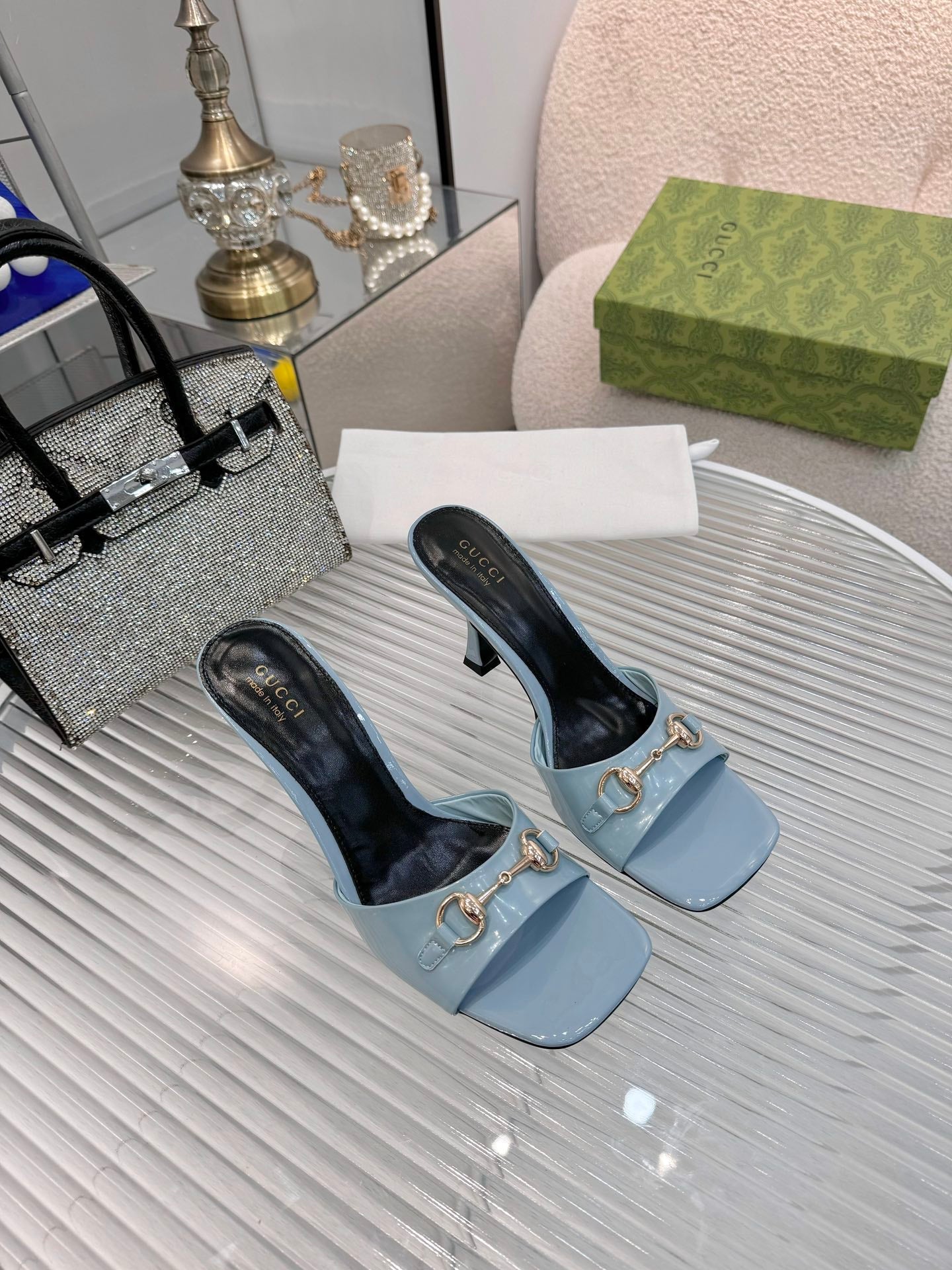 GG Gold Buckle Slide Sandal 80mm Blue-gray Patent Leather 457564