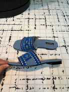 GG SLIDE SANDAL WITH GUCCI SCRIPT STONE DENIM