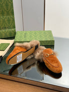 HORSEBIT MULE IN BRONZE ORANGE SUEDE AND LAMB WOOL LINING