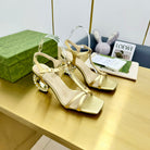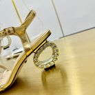 MEDIUM-HEEL SANDAL IN GOLD CALFSKIN WITH RHINSTONES