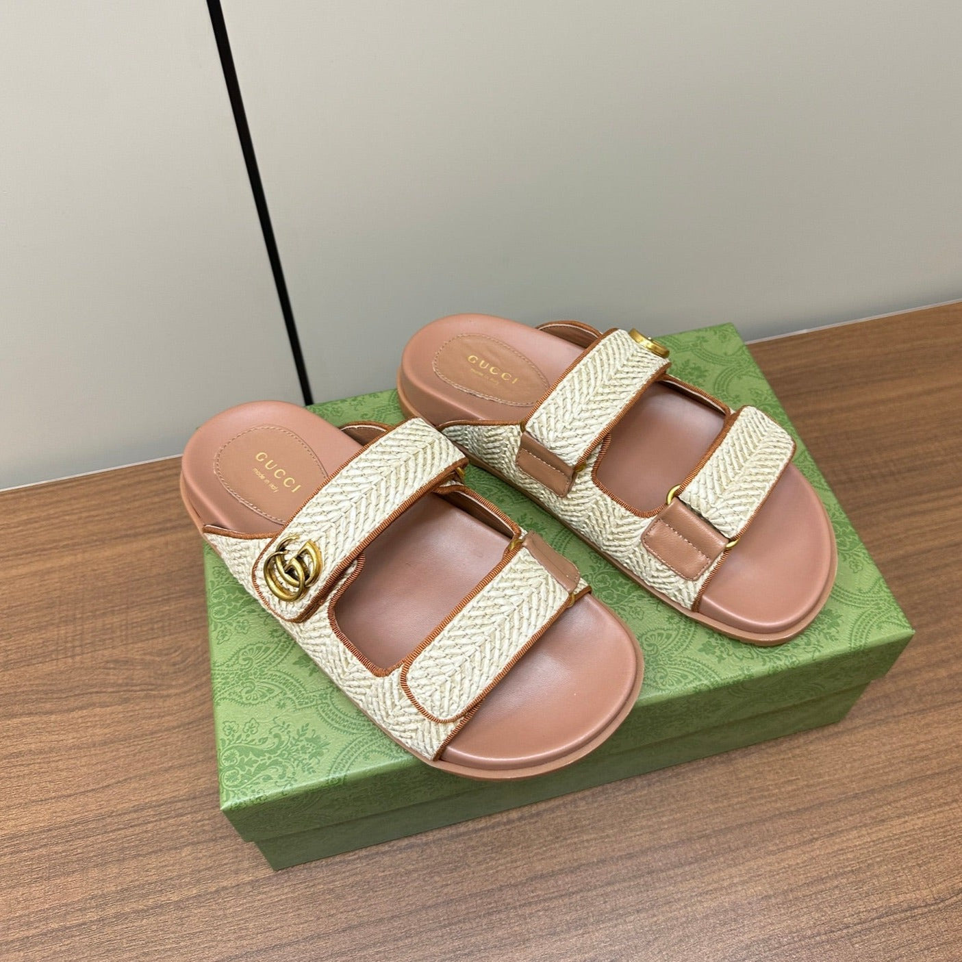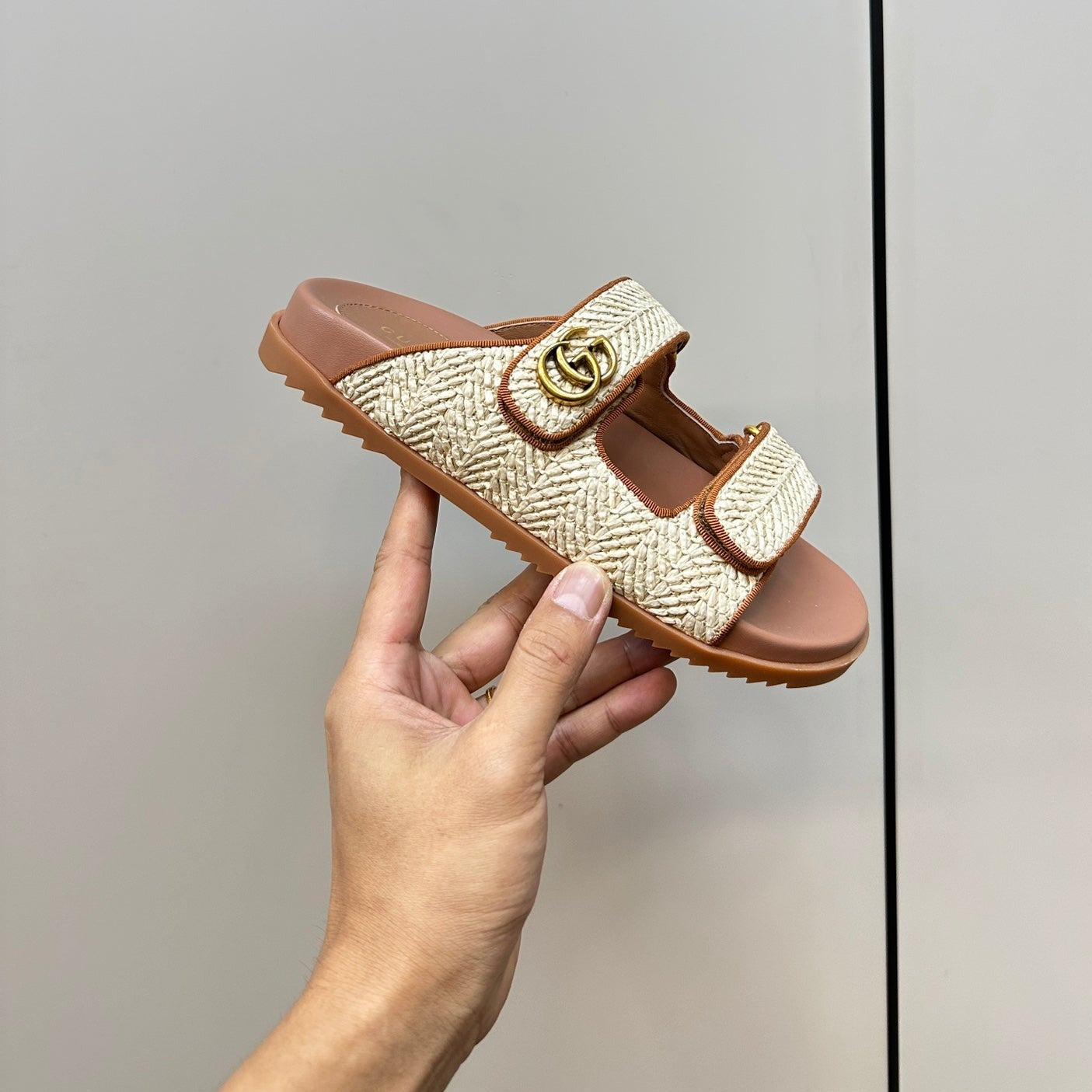 GG MATELASSÉ CANVAS SLIDES GREEN LOGO