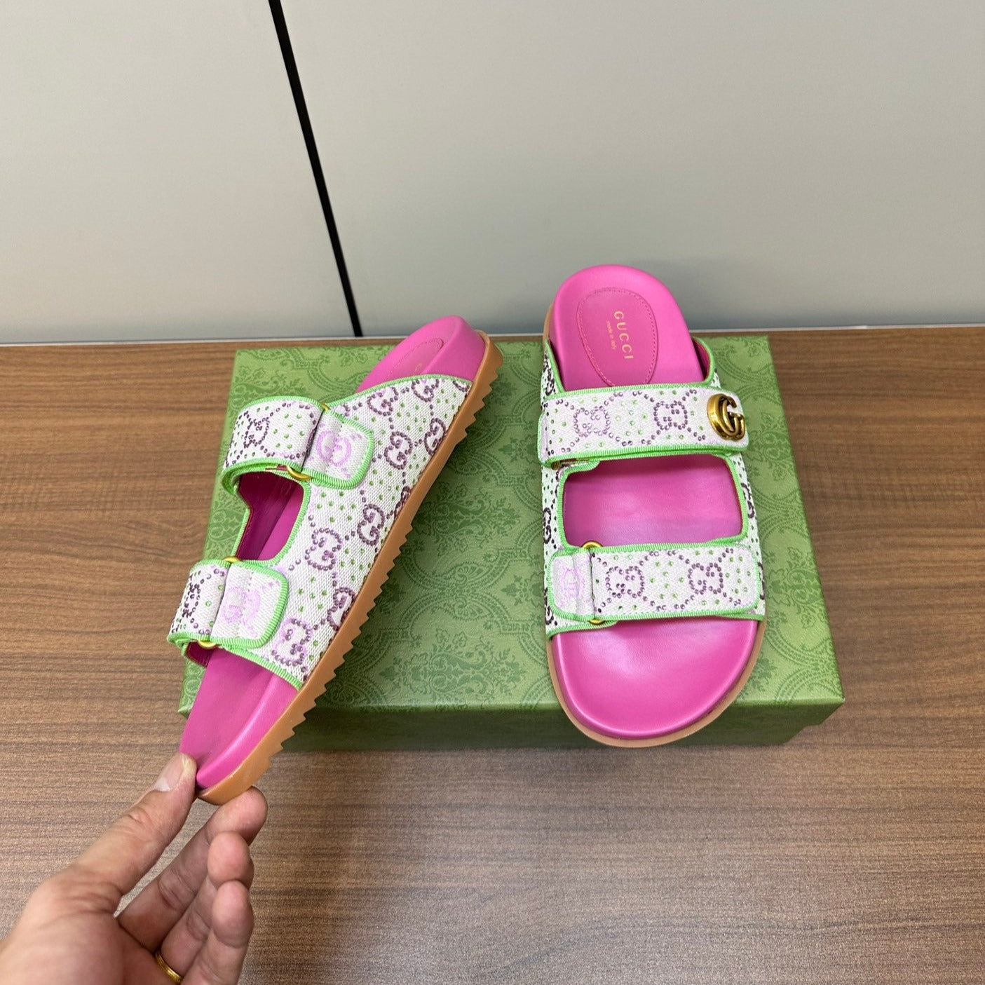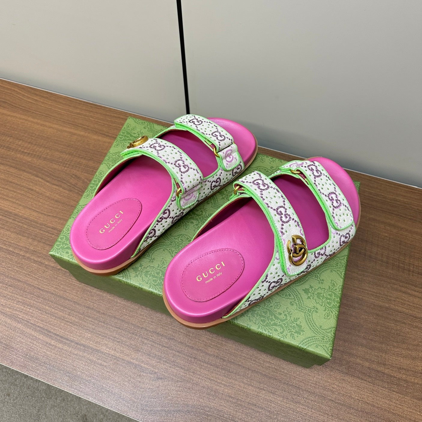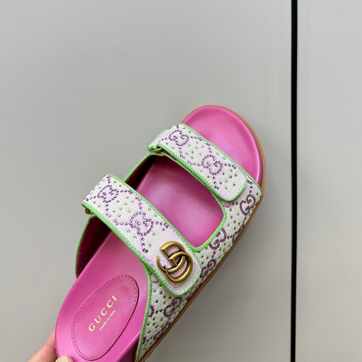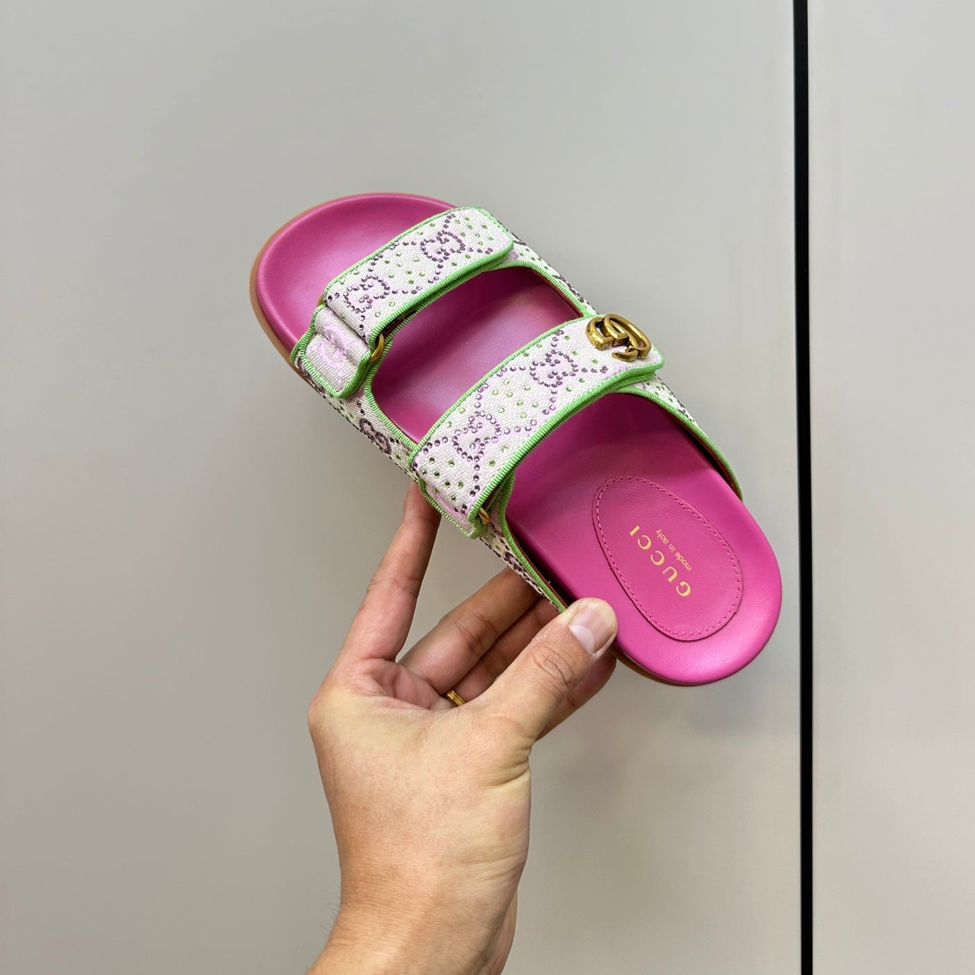 GG MATELASSÉ CANVAS SLIDES PINK LOGO