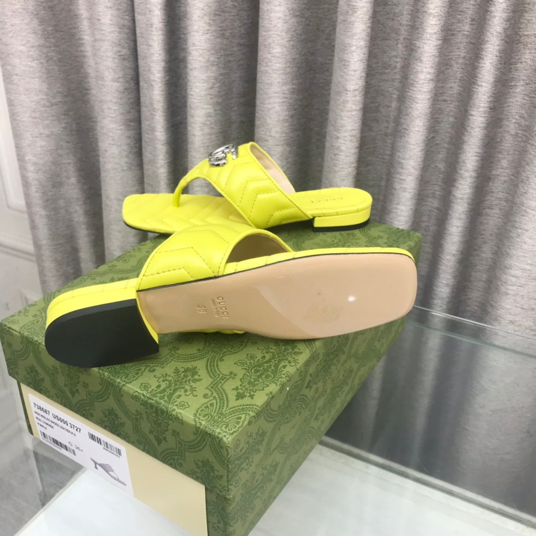 GG BAMBOO BUCKLE FLAT SANDALS GREEN