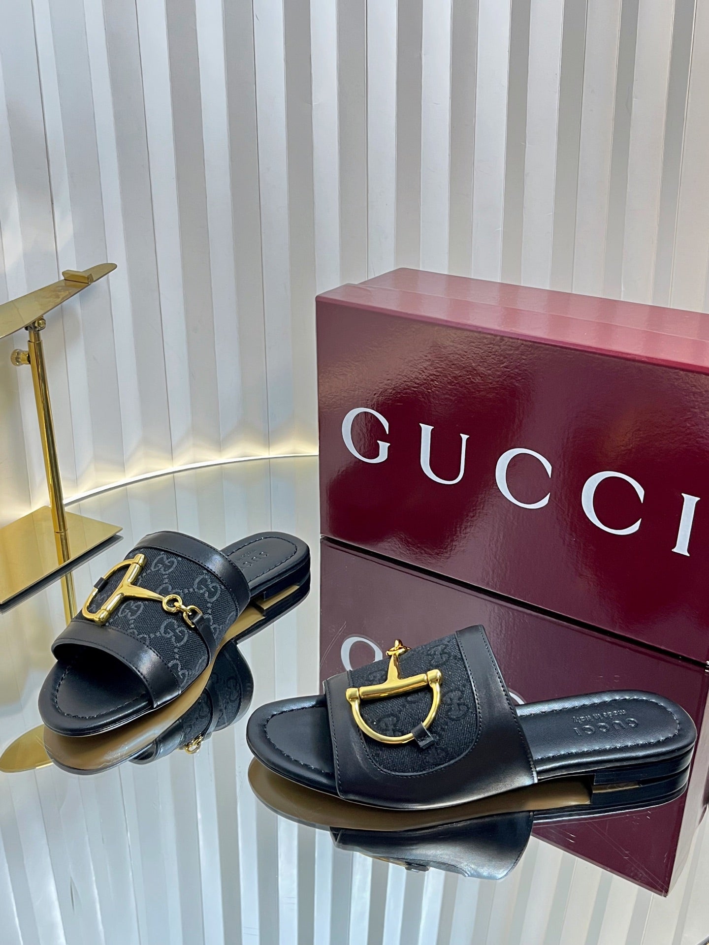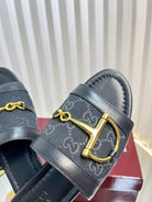 GC 25 Horsebit GG Sandals Black Canvas 294676