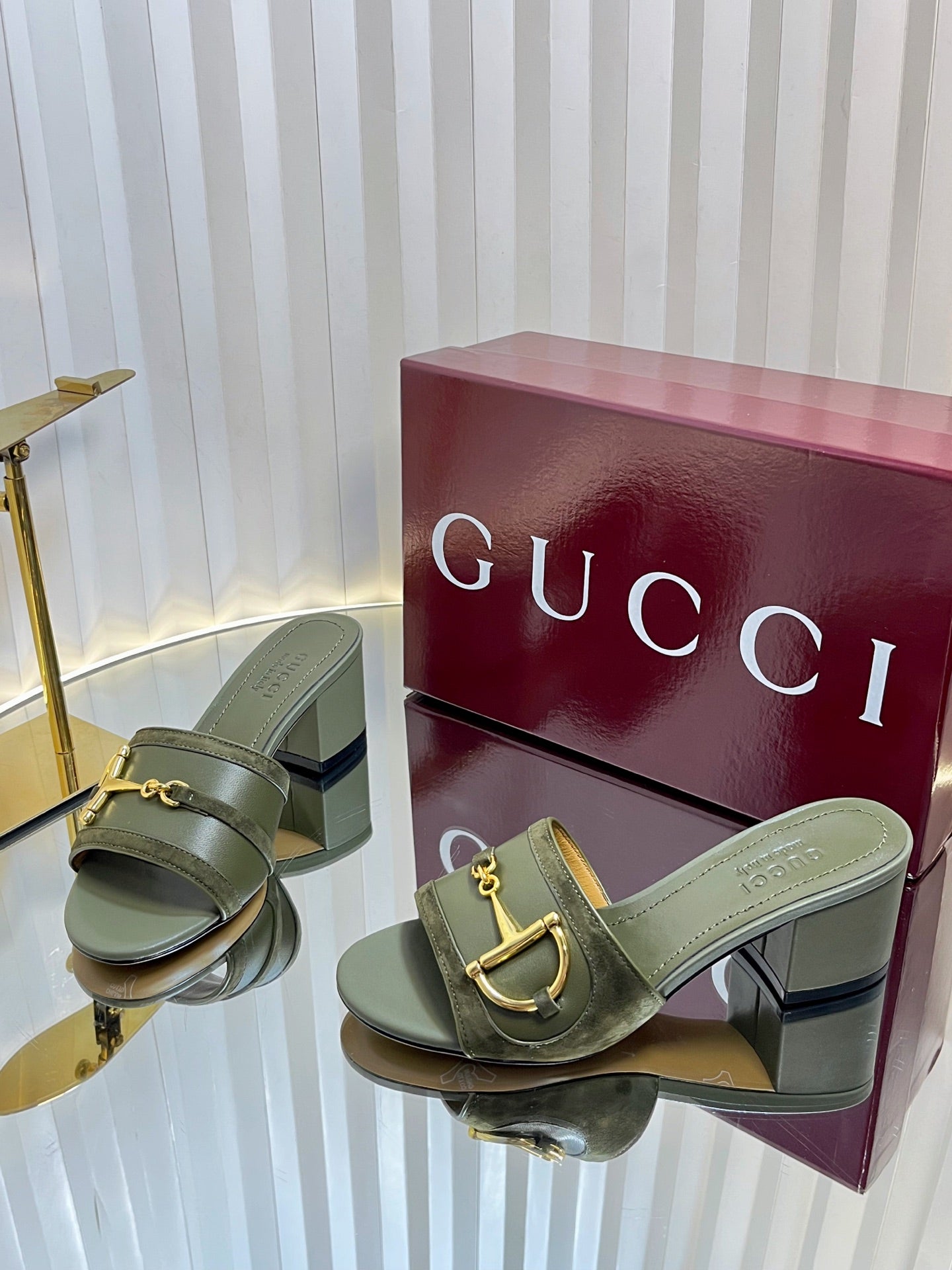 GC 25 Horsebit Sandals 50mm Dark Green Suede Sheepskin 294655