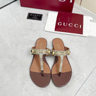 GC 25 Horsebit Thong Sandals Brown Canvas Leather 293854