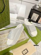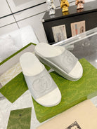 GC 25 Interlocking G 50mm Slide Sandal Gray White Cowhide 292387