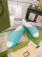 GC 25 Interlocking G 50mm Slide Sandal Sky Blue White Cowhide 292385