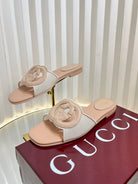 GC 25 Interlocking G Slide Sandal Nude Canvas Cowhide 294646