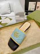 GG EXCLUSIVE SLIDE SANDAL SKY AND BLACK CALFSKIN