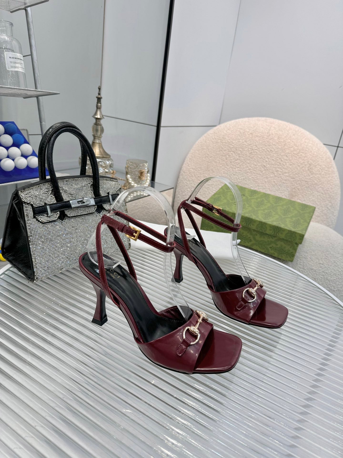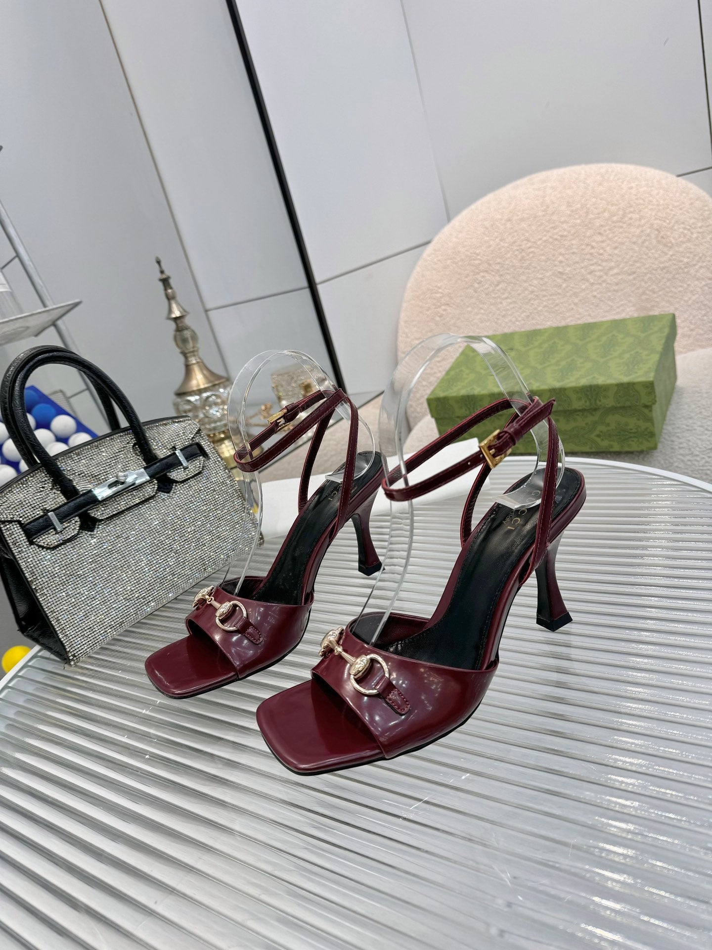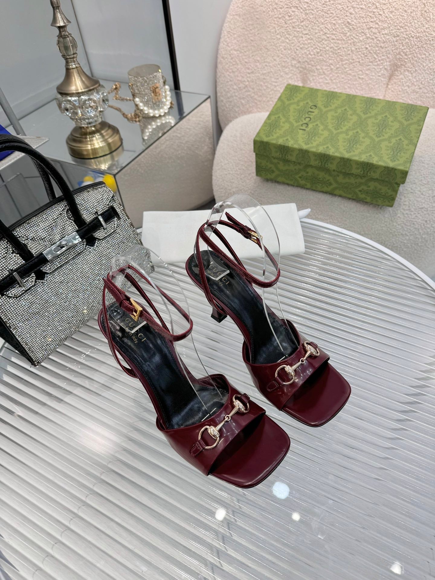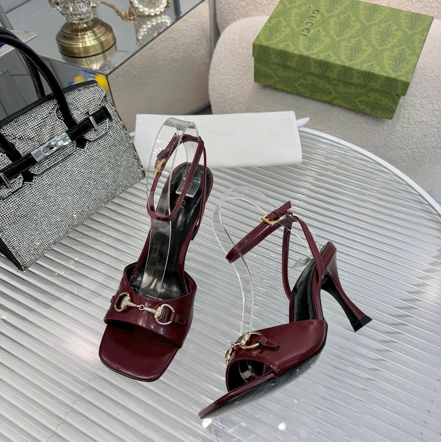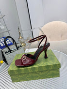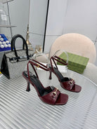 GG Gold Buckle Sandal 80mm Burgundy Patent Leather 457560
