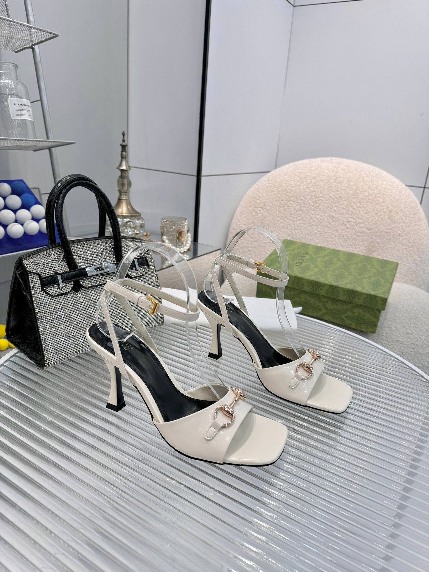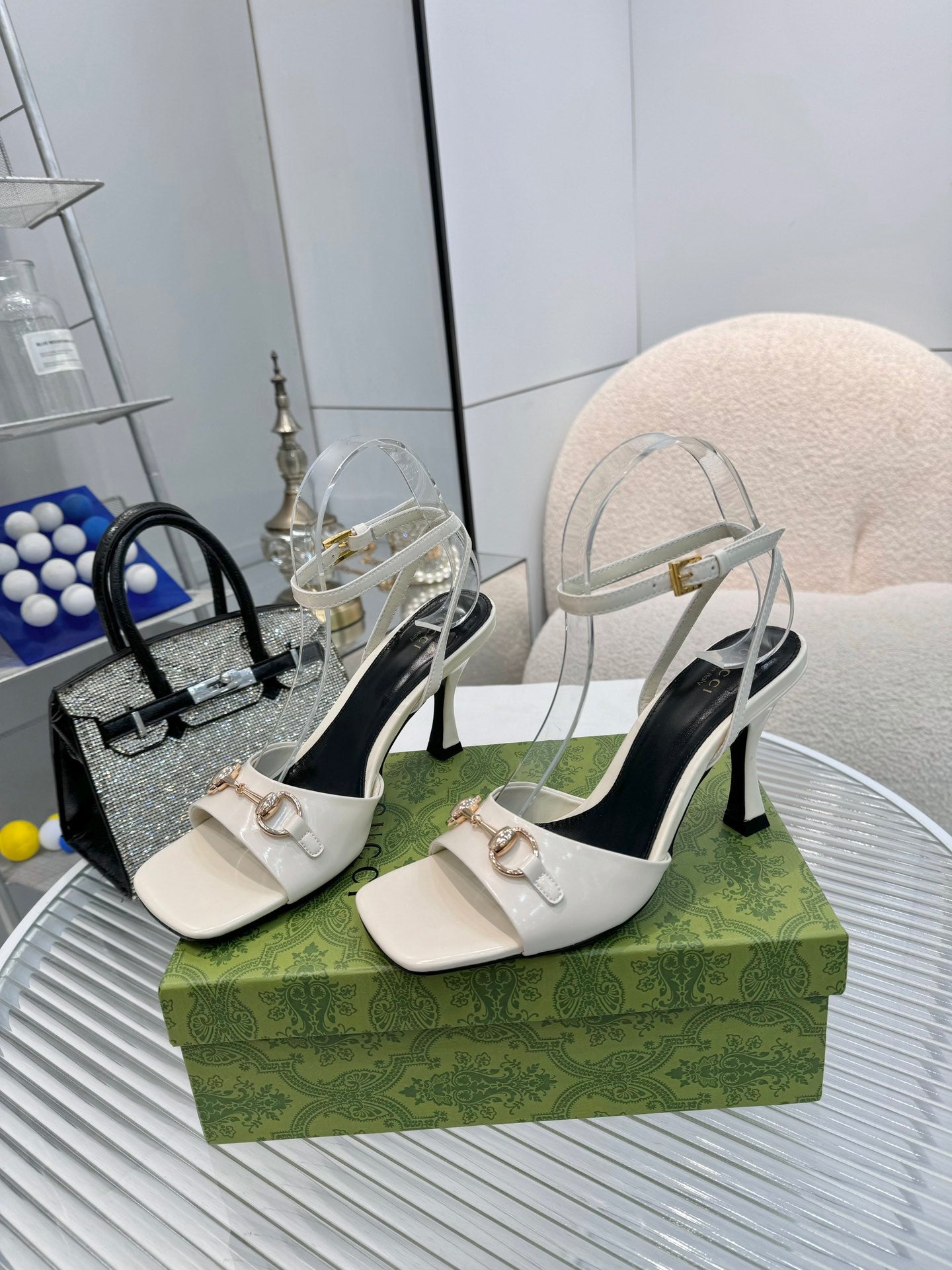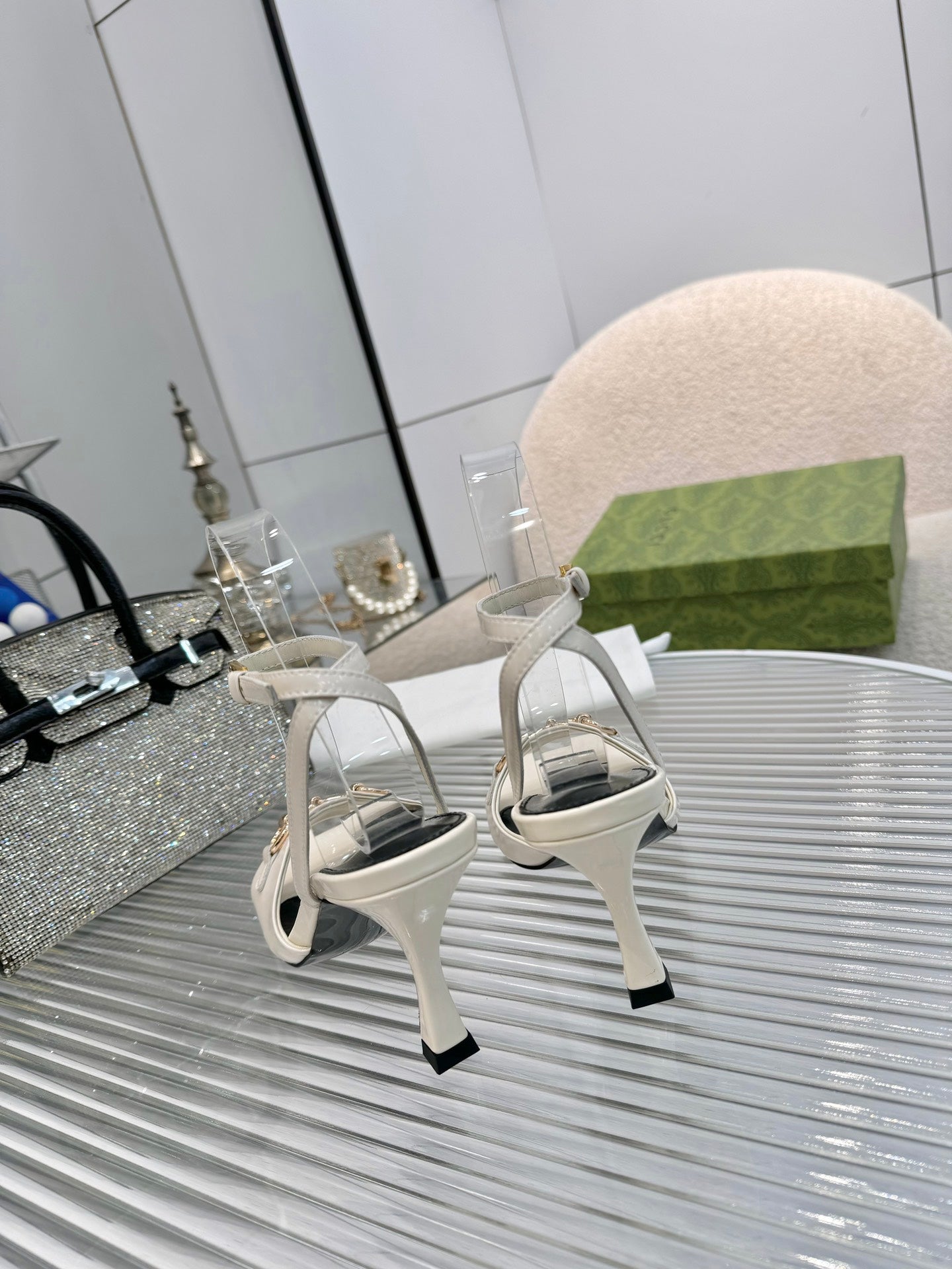 GG Gold Buckle Sandal 80mm Cream Patent Leather 457559
