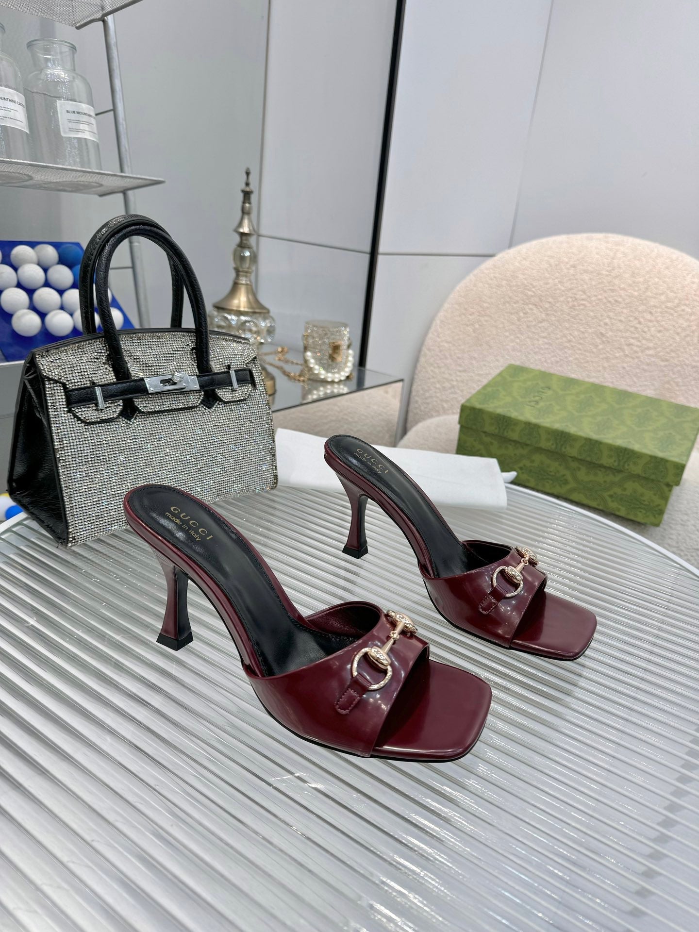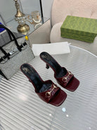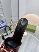 GG Gold Buckle Slide Sandal 80mm Burgundy Patent Leather 457566
