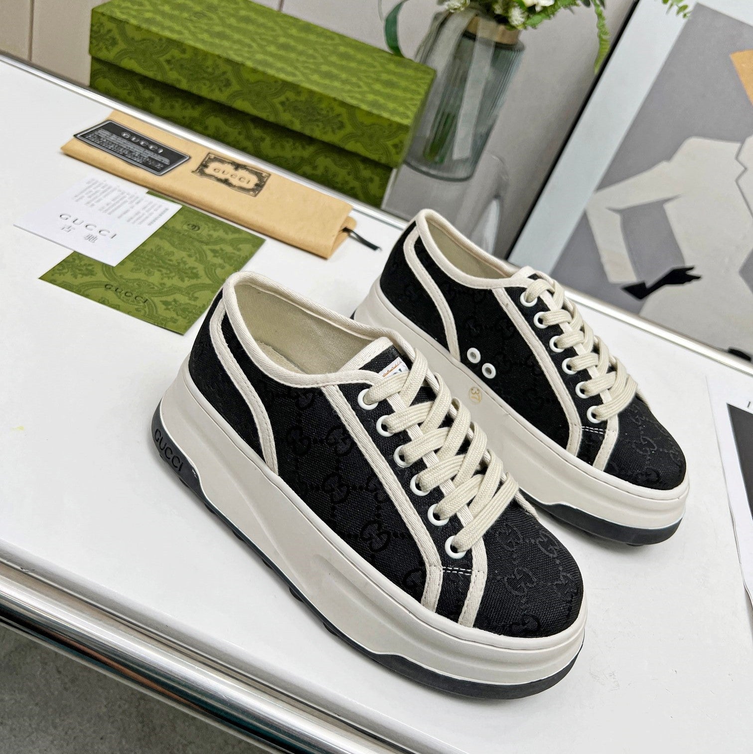 GG Low Top Sneakers 50mm Black White Canvas 457428