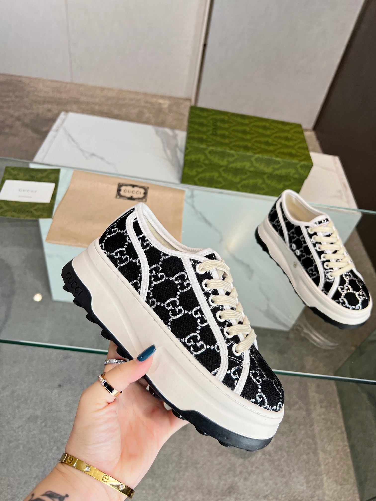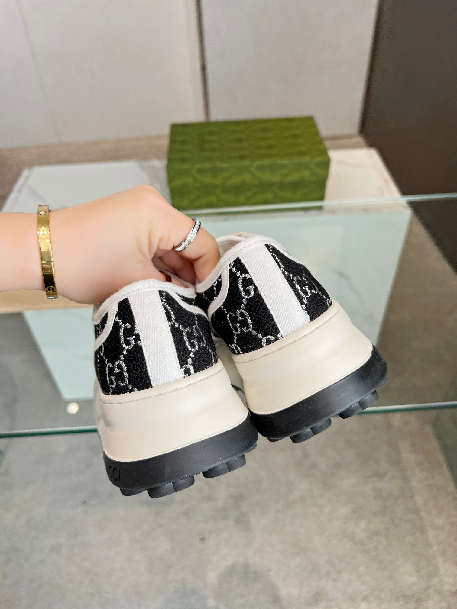 GG Low Top Sneakers 50mm Black White Monogram Canvas 457435