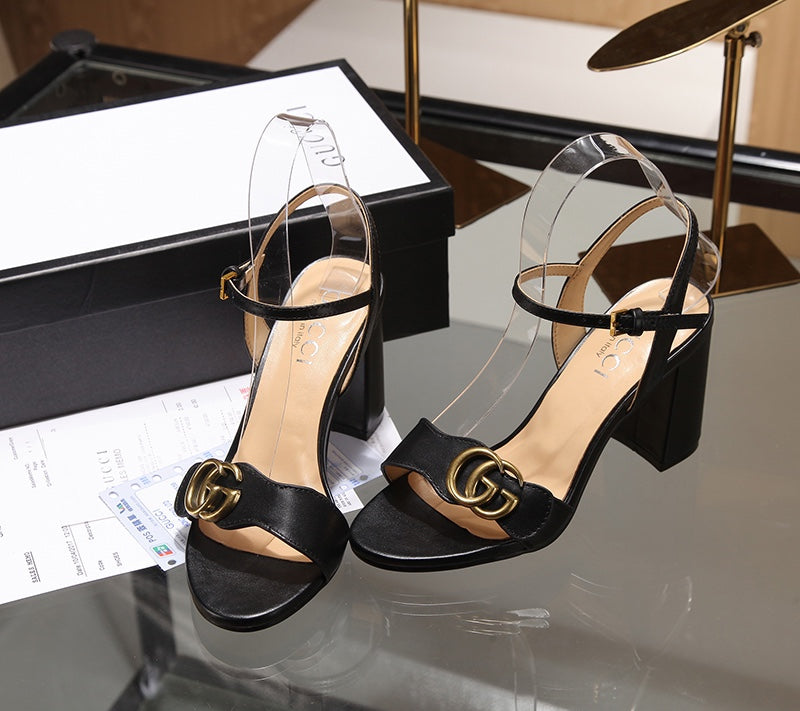 GG Marmont Ankle Strap Sandal 8cm Black Sheepskin 342564